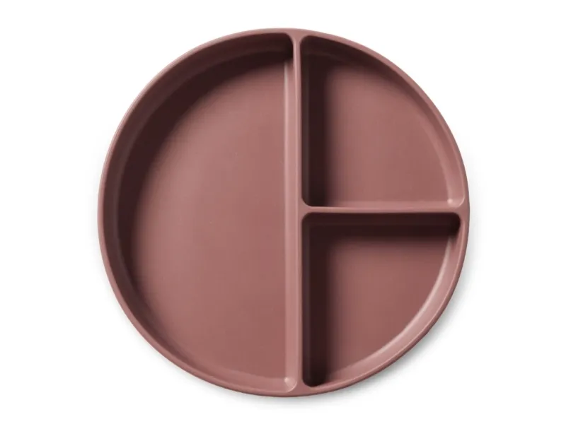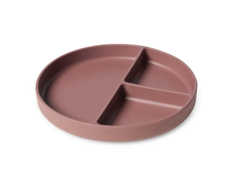 RUMINDDELT SILIKONE TALLERKEN Ruminddelt silikone tallerken med sugekop. Denne tallerken er perfekt til de mindste. Rummene i tallerknen sikre at maden ikke bliver blandet sammen, og sugekoppen sikre at tallerknen ikke bliver smidt på gulvet.