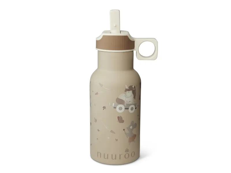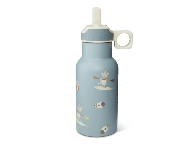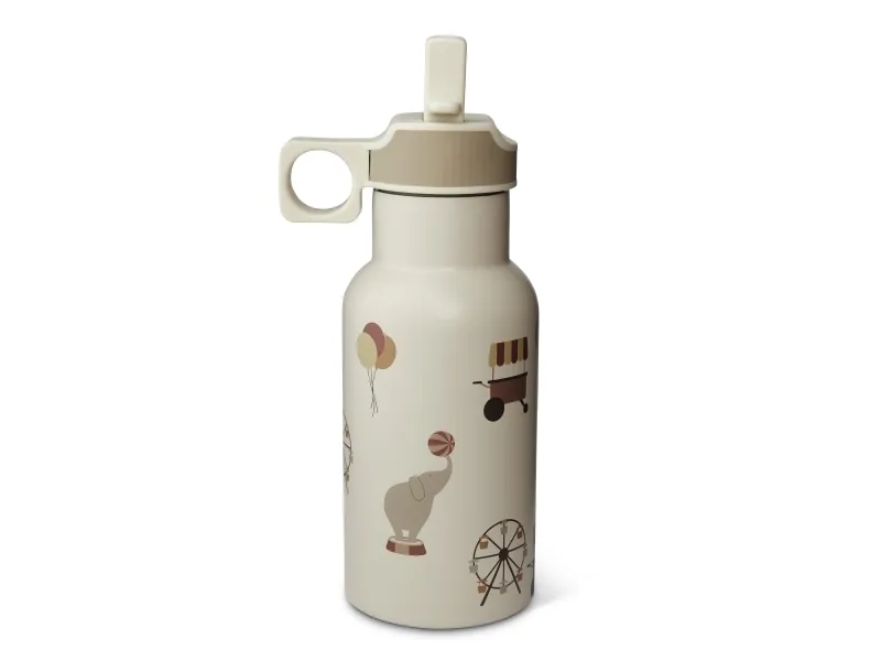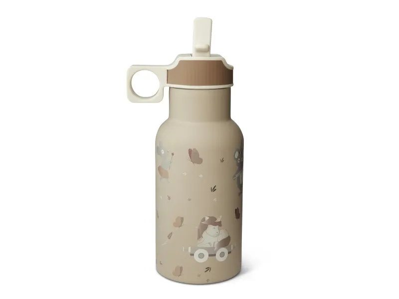 VANDFLASKE I STÅL - 350 ml. Rustfri vandflaske i stål, lavet med smart låg. Låget har et lille håndtag som gør flasken nem at holde ved. Kan holde væsker kold i op til 24 timer.