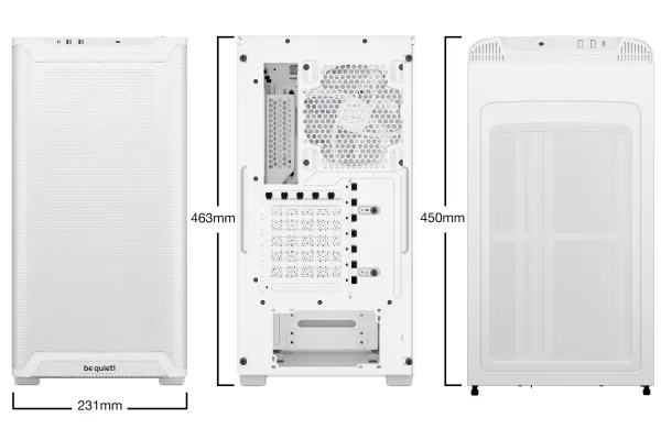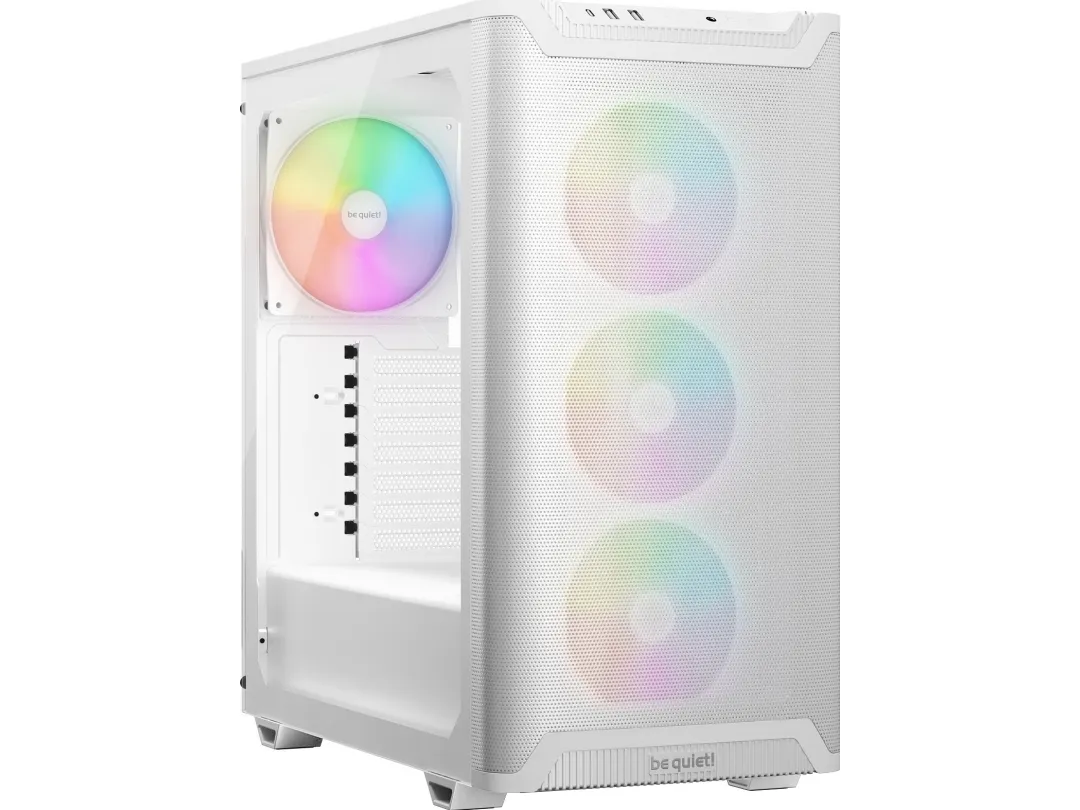 The be quiet! Pure Base 501 LX is designed with a midi-tower form factor that emphasizes noise reduction. Fastened with three 120 mm ARGB front fans and a 140 mm ARGB rear fan, this case ensures effective cooling and visually appealing aesthetics. The airflow-optimized mesh promotes ventilation, while the removable dust filters in the top, front, and bottom allow for maintenance, keeping the interior pristine. An integrated cable management system ensures a clutter-free build, enhancing airflow and ease of access.