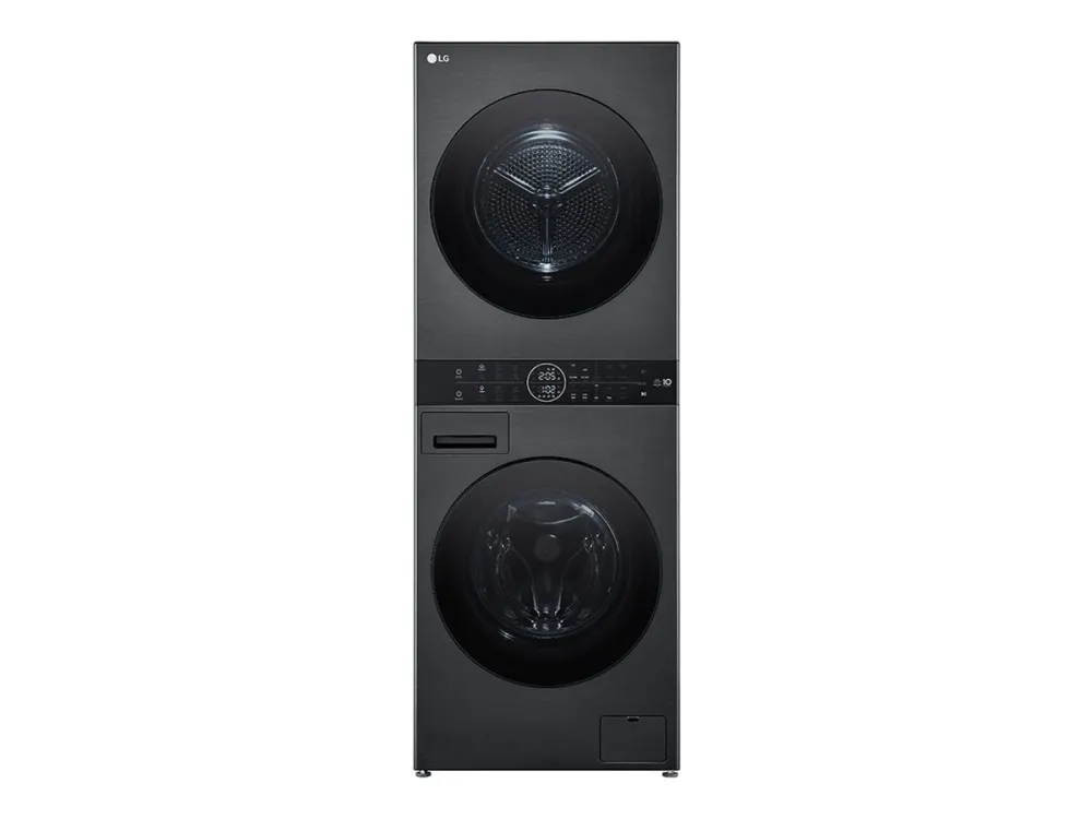 LG WashTower WT1210BBF - Washer/dryer set - Wi-Fi - bredde: 60 cm - dybde: 66 cm - høyde: 165.5 cm - frontileggelse - 12 kg - 1400 rpm - platinum black