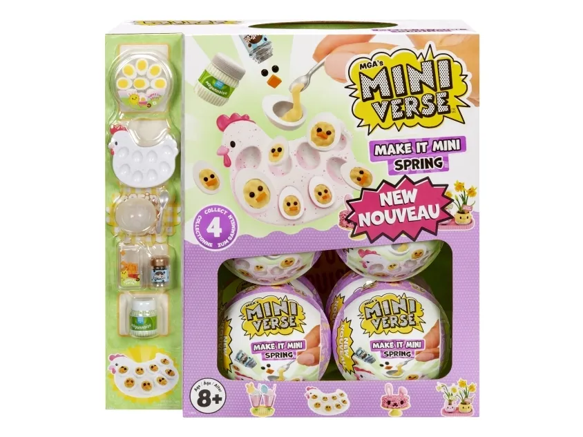MGA's Miniverse, Make It Mini Food™ er den originale miniatyrsamlefiguren som du kan forberede, sette og vise frem. Pakk ut dine favorittmatvarer i vår-tema i miniatyrformat. De er svært små i skala, men realistiske og detaljerte. Fans kommer til å elske å samle sine favorittmatvarer i vår-tema i miniatyrskala.