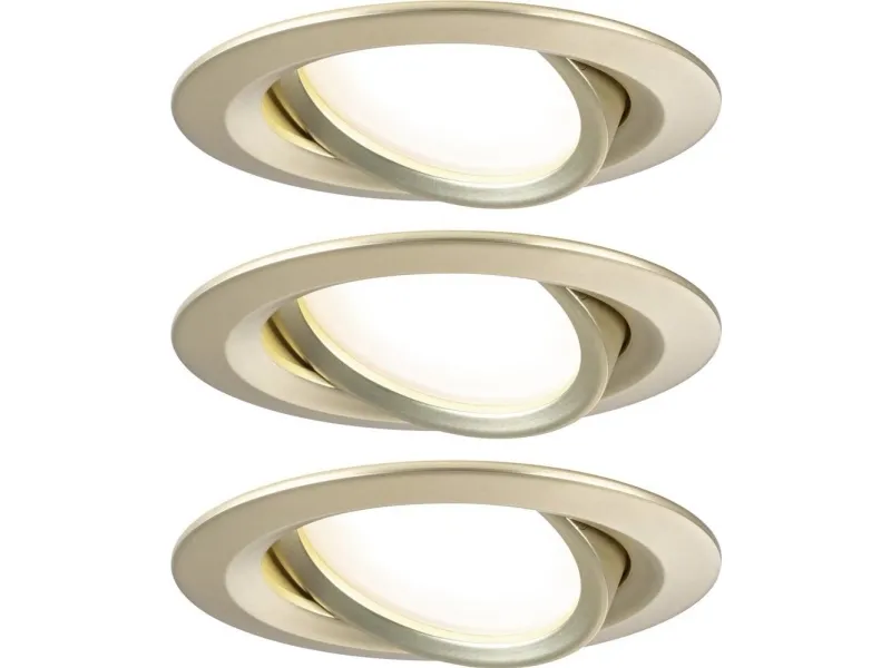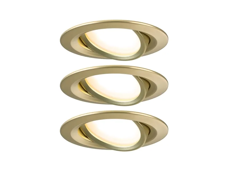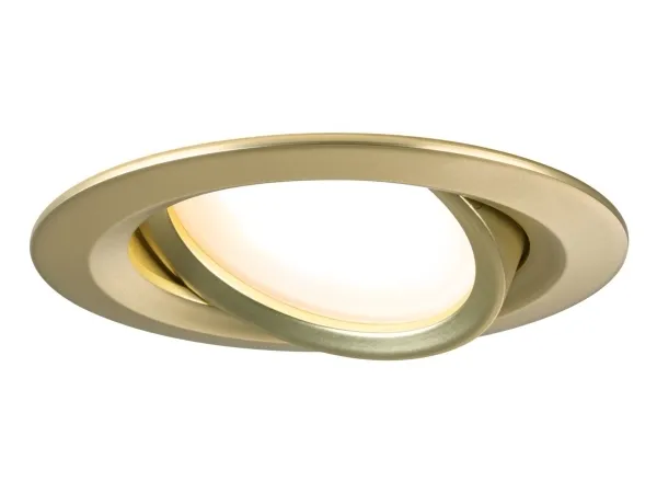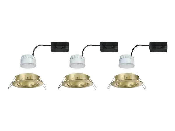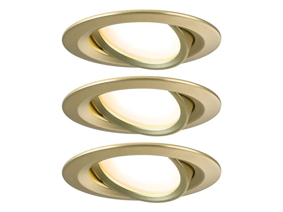Den runde Nova Coin indbygningslampe (sæt med 3 stk.) i guld, med 3x45lm, er det ideelle valg for et funktionelt og stilfuldt lysdesign. Takket være lampens svingbarhed kan lyset styres overalt, hvor der er brug for det. Fremstillet af robust, trykstøbt aluminium og med en indbygningsdybde på kun 45 mm egner den sig fremragende til individuelle boligkoncepter. Spræng ikke det puristiske design i uorden: Da lyskilden anvendes bagfra, er der ikke brug for en låsering. Den praktiske tilslutningsboks muliggør en direkte 230 V-tilslutning og tillader, at lamperne nemt og uindskrænket kan forbindes med hinanden. Takket være den ukomplicerede fiksering med holdefjedre, forbliver loftet ubeskadiget også efter adskillige ind- og udbygning. Til leveringen hører effektive og langtidsholdbare Coin LED-lyskilder, der med 2700K giver en behageligt varmt hvidt lys for en stemningsfuld atmosfære.