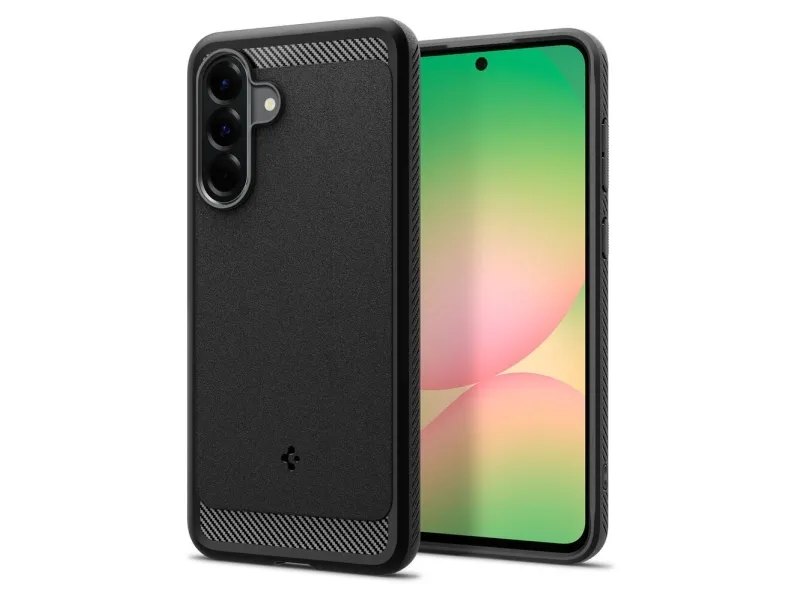 The Rugged Armor® packs a whole lot of style with daily drop defense. Inspired by car design, the Rugged Armor® bears its carbon fiber detailing against an all matte black finish. Every corner is packed with Air Cushion Technology® for optimum shock-absorption. Best of all, the sides are reinforced with with an all-new grip design. *Device is not included. Spigen Rugged Armor Galaxy A56 5G Case Matte Black. Case type: Cover, Brand compatibility: Samsung, Compatibility: Galaxy A56 5G, Maximum screen size: 17 cm (6.7"), Surface coloration: Monochromatic, Product colour: Black