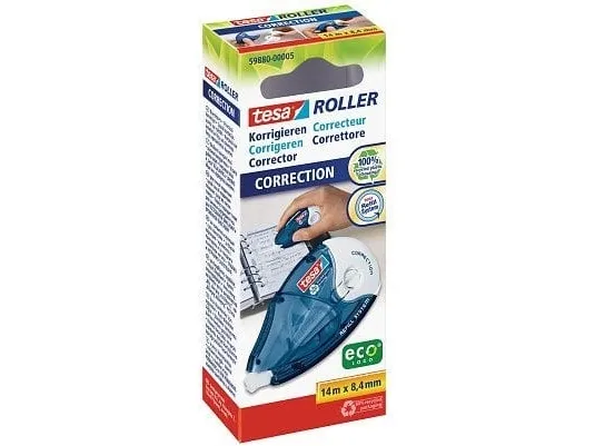 Tesa® korrekturrulle Gaffer tape® 8,4 mm x 14 m (B x L) sideanvendelse 1 stk. Båndbredde: 8,4 mm Båndlængde 14 m Tesa® scooter Gaffer tape® er praktisk og giver dig præcise korrektioner på papir. Den dækker og klæber godt.