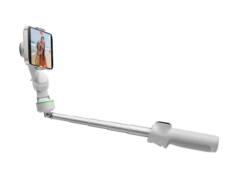 Deep Track 4.0, sporingsfunksjon, 3-aksestabilisering, USB-C-støtte, DockKit-kompatibel, kabriolet (stativ til selfiestang), SmartWheel-styring, Motion Tracking AI, innbygd posisjoneringsspeil for selvbilde, geststyring, ladefunksjon, 360° sideveis rotasjon, Dolly Zoom, bevegelsestidsforkortelse