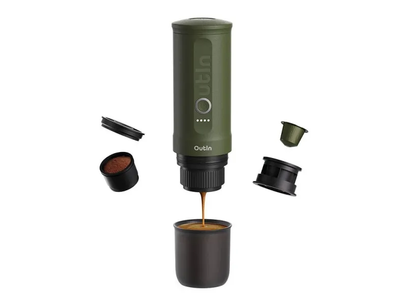The Outin Nano is a portable, cordless espresso maker that will satisfy the needs of any espresso lover - but not only! The device weighs just 670 g, so you can take it anywhere you want. The 7,500 mAh battery allows you to make as much as 5 cups of coffee using cold water or more than 200 cups hot without recharging. Thanks to the quick heat-up function, you can enjoy delicious espresso in just 200 seconds, while the 20 bar pressure and up to 92°C temperature guarantee fluffy froth. The machine is compatible with both ground coffee and capsules.