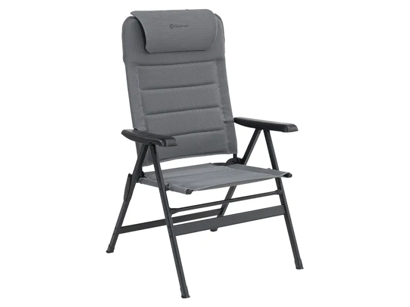 Outwell Camping Møbel Grand Canyon Grand Canyon kombinerer hurtigttørrende polstring med Textiline netstof. Stolen kan bære en maksimal belastning på 200 kg og er belagt med et vandskyende materiale under stoffet, som forhindrer skummet i at suge vand, hvis stolen står ude i regnvejr. Nakkestøtten er regulerbar og aftagelig.