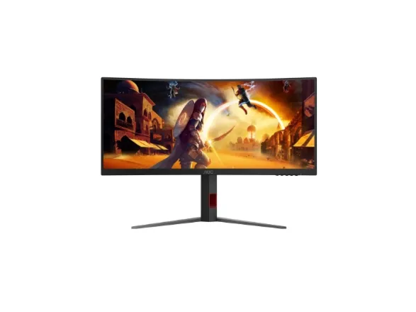 Dominate with the CU34G4Z 34" WQHD Curved Monitor, featuring a 3440x1440 resolution, HDR400, and a 240Hz refresh rate. Take your gaming to the next level with the CU34G4Z 34" WQHD curved monitor. Enjoy ultra-smooth gameplay with a 240Hz refresh rate and 1ms GtG response time. The 1500R curved Fast VA panel provides immersive visuals, while HDR400 enhances color and contrast. Equipped with an ergonomic stand, USB hub, and G-Menu software for customizable settings, this monitor is designed for gamers who demand precision and comfort.AOC G4 CU34G4Z. Display diagonal: 86.4 cm (34"), Display resolution: 3440 x 1440 pixels, HD type: Wide Quad HD, Display technology: LED, Response time: 1 ms, Native aspect ratio: 21:9, Viewing angle, horizontal: 178°, Viewing angle, vertical: 178°. Built-in USB hub, USB hub version: 3.2 Gen 1 (3.1 Gen 1). VESA mounting, Height adjustment. Product colour: Black, Red