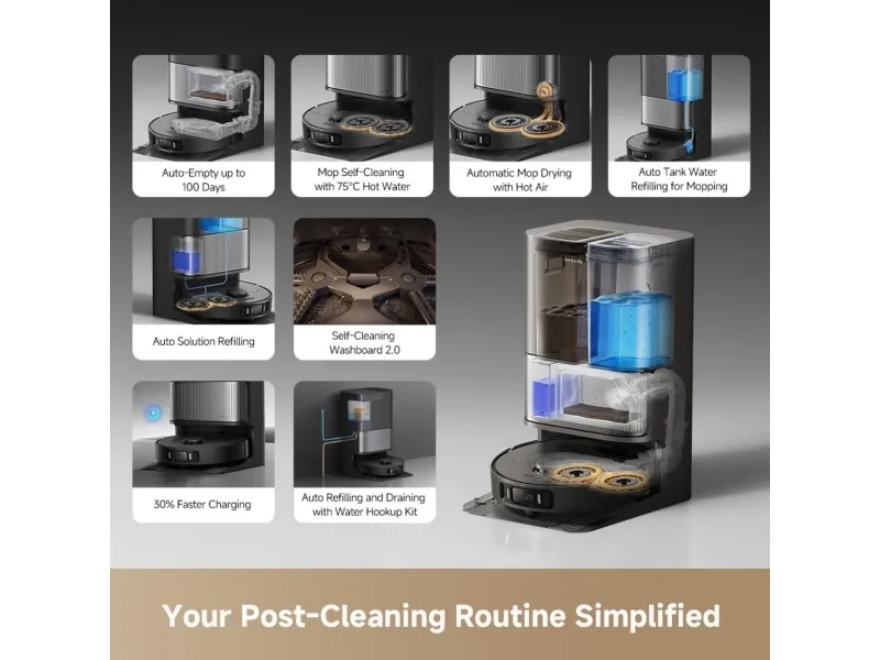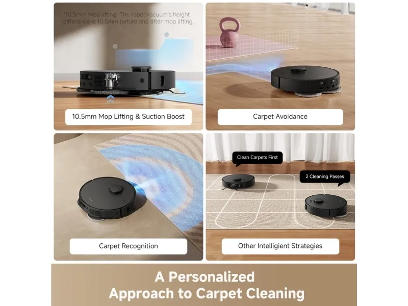 Xiaomi Dreame L40 Ultra AE robotstøvsuger tilbyr en effektiv rengjøringsløsning med allsidige funksjoner. Denne støvsugeren er designet for både våt- og tørr rengjøring og fungerer effektivt på et stort område på opptil 168 m², noe som gjør den egnet for hjem i ulike størrelser. Med et kraftig sugetrykk på 19 kPa og en støvkapasitet på 0,395 liter sikrer den grundig rengjøring, samtidig som den har et poseløst design for enkel vedlikehold. Den er utstyrt med avansert teknologi, inkludert Vormax-sug og MopExtend RoboSwing-teknologi for optimal ytelse. Intelligent assistanse fra Siri, Google Assistant og Alexa gjør det mulig å styre den enkelt med talekommandoer, mens den medfølgende rengjørings- og ladestasjonen gjør det praktisk å holde støvsugeren klar til bruk.