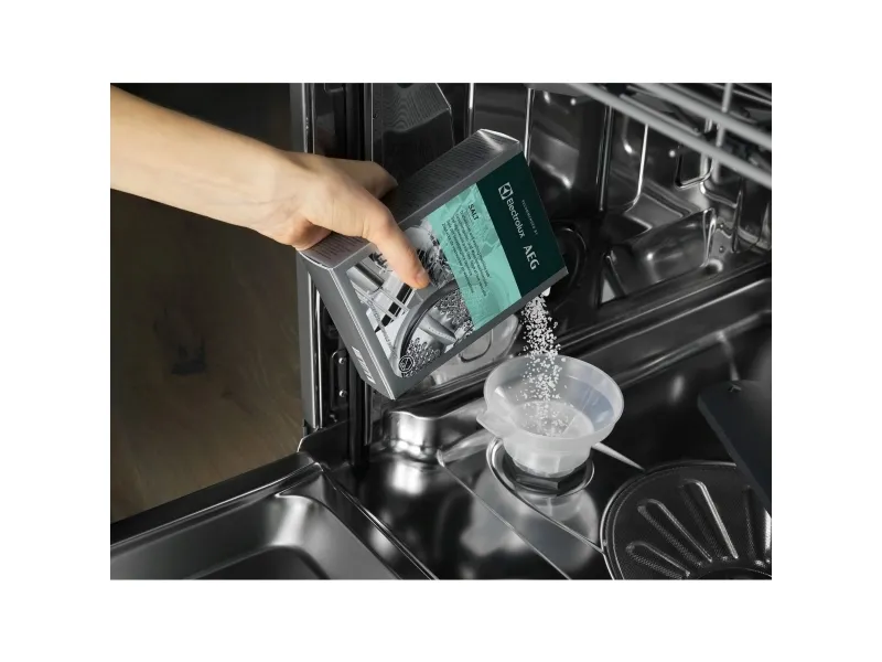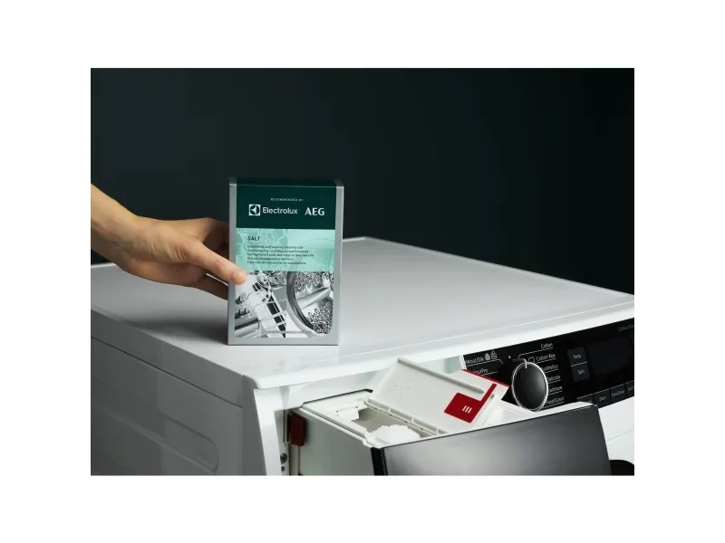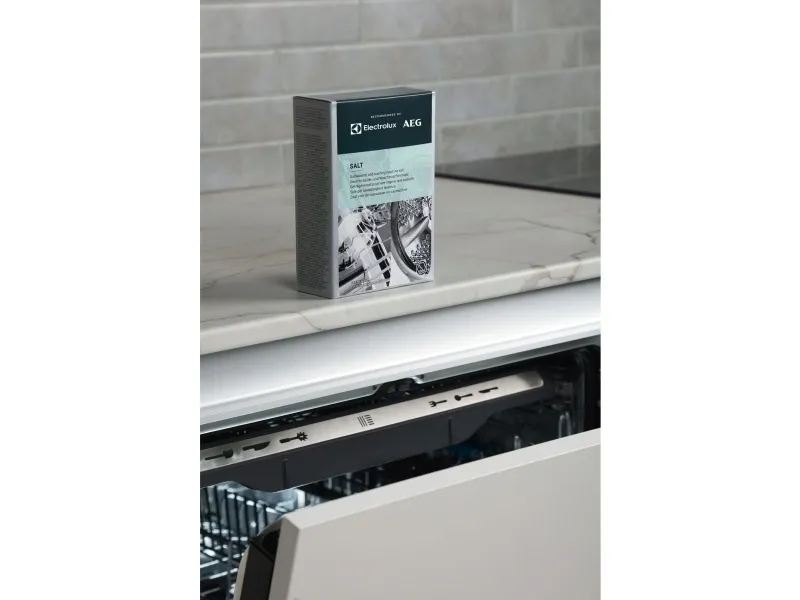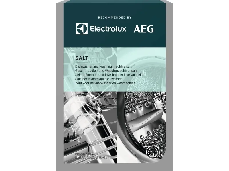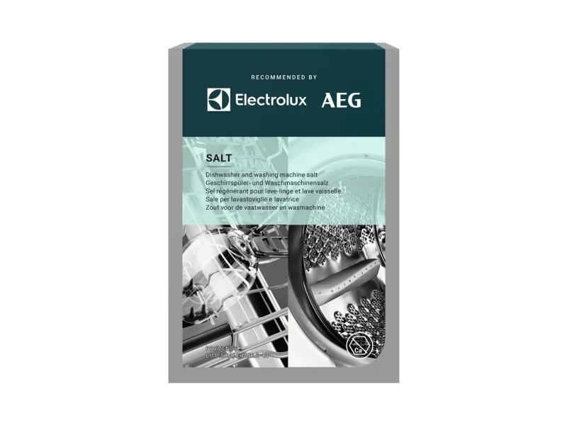 AEG M3GCS201. Product type: Dishwasher salt, Product form: Solid, Volume: 1000 kg. Quantity per pack: 1 pc(s), Package type: Box