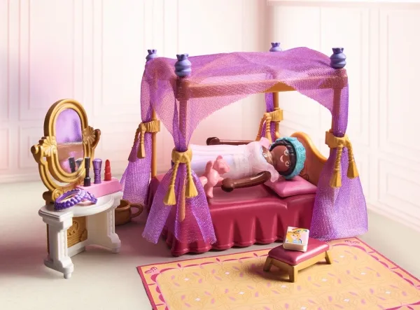 Prinsesse i soveværelset med påklæde I himmelseng på prinsesse-bummeren kan du sover og drømme på eventyr. Med de tre lommer, der kan skiftes og hænges op efter ønske, har prinsessen altid den passende påklædning ved hånden. De to behagelige siddepuder indbyder til en lille stud eller en nlet plasch mellem ven*indvendig. På det elegante sminkbord kan der kreeres nye looks, og prinsessen kan forberedes til enhver anledning.
