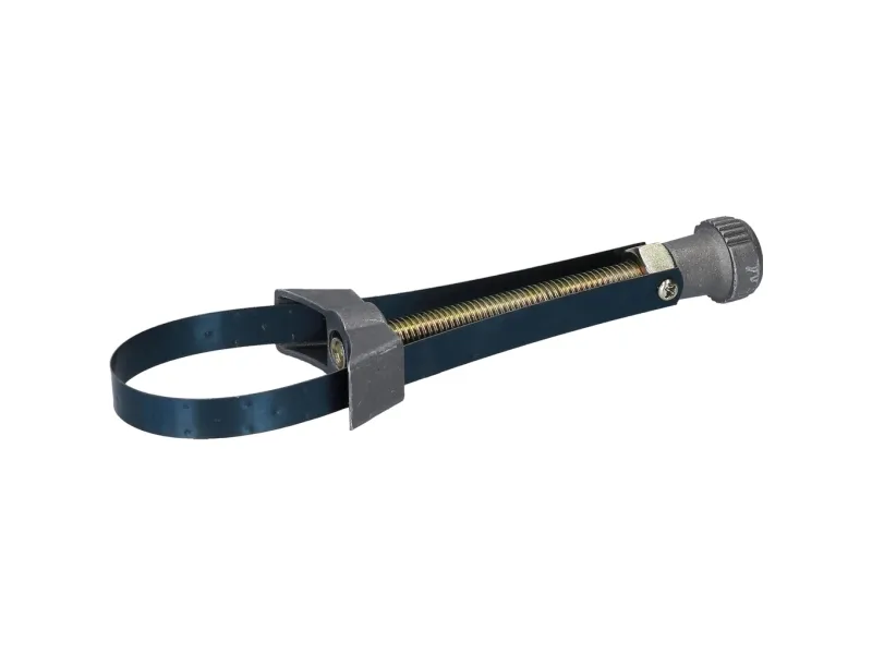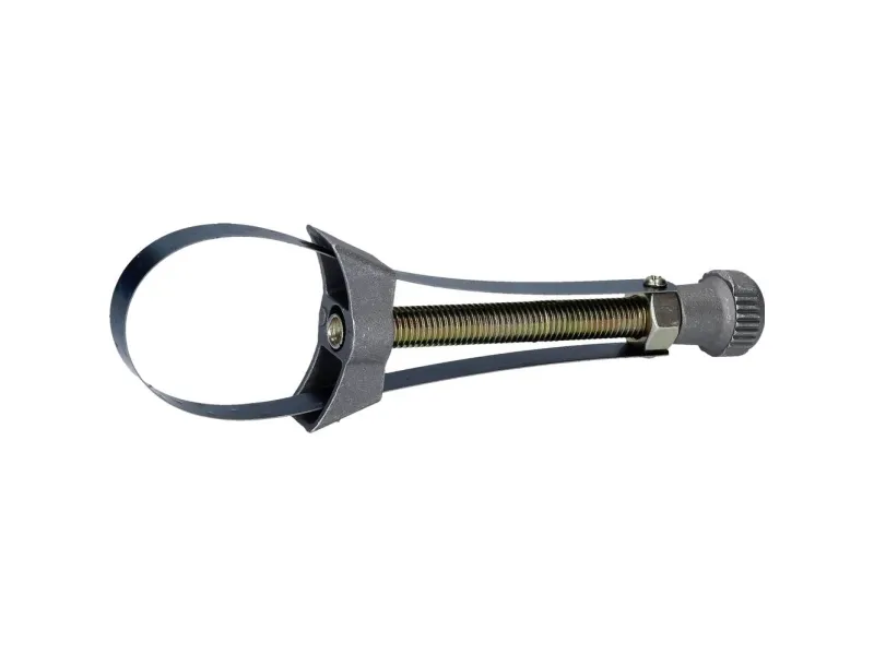 Oliefilternøgle, dia. 65-110mm • ideal egnet til at til at udbygge filtre og filterpatroner • Enhåndsbetjening • trinløst indstillelig • Også til svært tilgængelige filterkabinetter • Indstilling af filterdiameter ved at dreje på grebet • Genaktiveret fjederstålbånd giver sikker fastholdelse på filteret og sørger for kraftfuld løsning af filteret