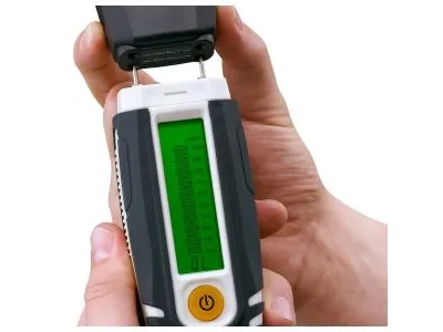 OBS! Denne produktbeskrivelse er endnu ikke blevet oversat til dansk af vores oversættere. Derfor er teksten maskineoversat fra den tyske originaltekst. Bæredygtig konstruktion: Størstedelen af huset består af genvundet plast - Hurtig og præcis måling af træ- og bygningsfugtighed - Kan anvendes til test af mange træsorter Indeks-funktion til optimal vurdering af forskellige materialekategorier - Effektiv kontrol af måleapparatet med referencemåling over beskyttelseskappen Praktisk visning af den aktuelle omgivelsestemperatur ved aktivering - Godt læsbart display