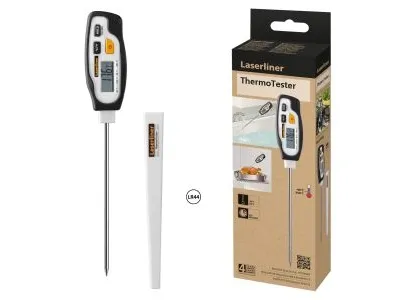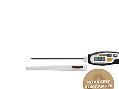 Digitalt termometer til husholdning, gastronomi, handel, håndværk og industri - brug af genbrugt materiale til bæredygtighed Det digitale termometer til at stikke ind i eller dykke er velegnet til brug inden for gastronomi, husholdning, håndværk og industri. Ved bestemmelse af temperaturforskelle kan den mindste og største måleværdi vises. Til fordelene ved apparatet hører det store måleområde samt hurtig reaktions- og måletid. Anvendelsen er komfortabel på grund af det let aflæselige LC-display. En stor del af huset består af genbrugt materiale og yder et værdifuldt bidrag til bæredygtighed.