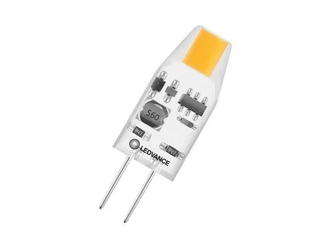 Små lavvolt 12V LED-lyskilder med stiftsokkel. Produktegenskaber: Kompatibel med mange konventionelle og elektroniske forkoblinger (dvs. se Hyperlink target = ''https://www.ledvance.dk/serviceydelser-og-vaerktoejer/serviceydelser/lavspaendings-led-lyskilder/index.jsp''kompatibilitetsliste/Hyperlink). LED-tiv til 12V halogenlyskilder. Sokkel: G4. Produktfordele: Ekstremt små mål. Variabel brug ved jævn- og vekselstrøm. God all-round lysudsendelse. Ideel til dekorative og fritbrændende anvendelser. Lang levetid op til 15.000 timer. Fire års garanti. Lavere energiforbrug end gløde- eller halogenpærer. Anvendelsesområder: Dekorative applikationer. Hyggelig og behagelig belysning i hele hjemmet. Udendørs brug udelukkende i egnede armaturer. Sikkerhedsanvisninger: Do not touch the lamp if broken.. Må ikke bruges, hvis udvendig pære er defekt.. For at sikre fuldt lysudbytte og lang levetid anbefales det at fjerne evt. glas eller cover på armaturet..