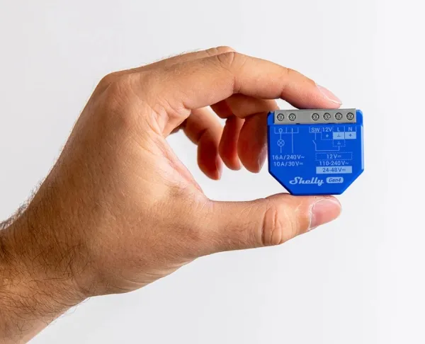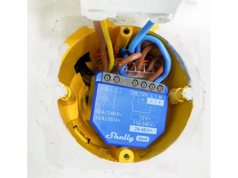 Shelly 1 Gen4 er beregnet til montering bag afbryderen, stikkontakten eller lampeudtaget og giver nem betjening og automatisering af lys, garageporte, vandingssystem, ventilatorer og lignende. Takket være det kompakte design er den nem at installere i væg- og loftsdåser.
