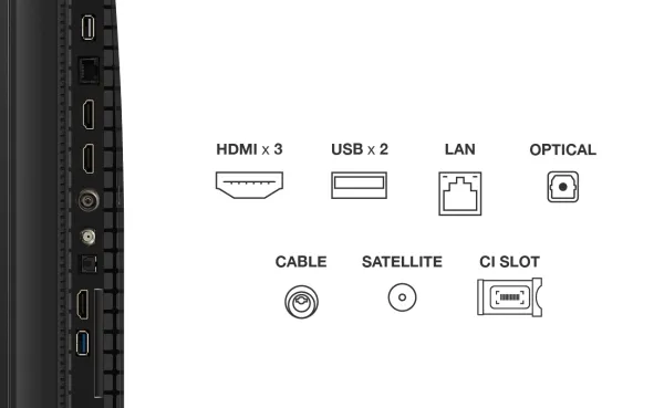 3 x HDMI USB 3.0 LAN Digital lydutgang (optisk) USB 2.0