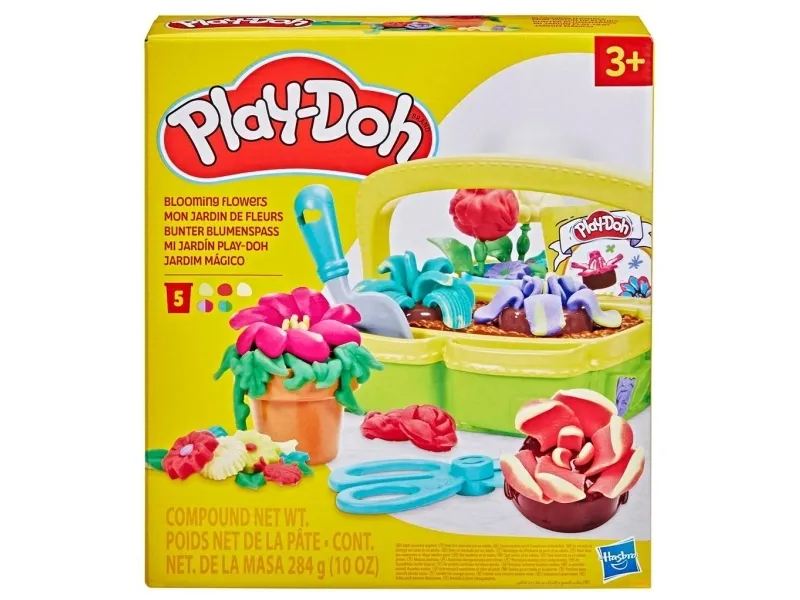 La fantasien blomstre med Play-Doh Blooming Flowers barnelekesett! Denne innendørs hageleken er klar for alle årstider, med morsomme måter å late som man er blomsterhandler på året rundt. Blomsterkassen og blomsterformene kan lage 4 forskjellige Play-Doh-blomsterformer og bokformen lager 2 varianter til. Vis og hold blomstene og stilkene på plass med blomsterpotten og vasen. 5 Play-Doh-bokser og 3 oppskriftskort hjelper til med å sette fantasien i gang med denne sanseleken. Gi en gave til barn fra 3 år og oppover som hjelper kreativiteten deres med å blomstre! PLAY-DOH og HASBRO og alle relaterte varemerker og logoer er varemerker som tilhører Hasbro, Inc.
