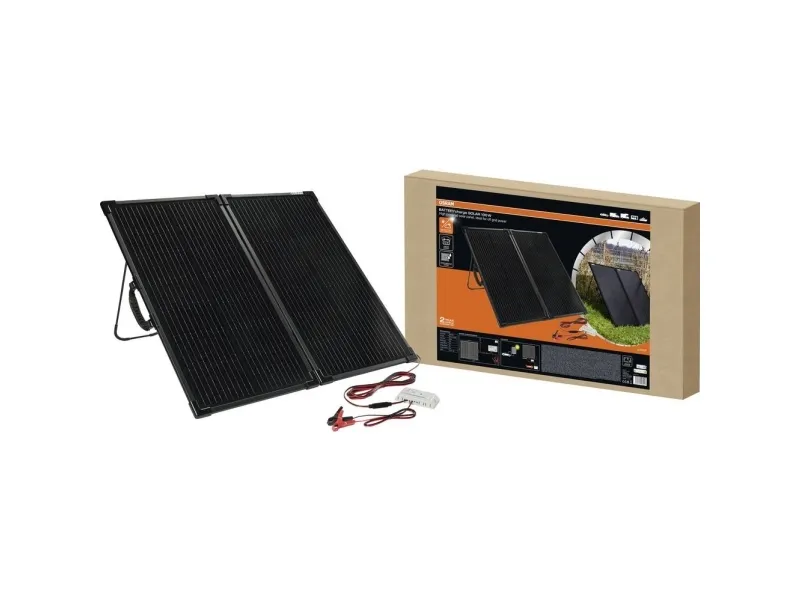Osram Batterycharge solpanel 100W til 12V OSRAM BATTERYcharge SOLAR 100W er et højtydende solpanel, der er udviklet til effektiv opladning og vedligeholdelse af 12V batterier. Det er ideelt til brug i campingvogne, autocampere, både og andre steder, hvor man har brug for strøm uden for elnettet. Med op til 100W udgangseffekt og monokrystallinske solceller leverer panelet stabil og gratis solenergi, selv under overskyede forhold. Panelet er monteret i en robust aluminiumsramme og leveres med en indbygget 12V/10A laderegulator, som beskytter batteriet mod overopladning. Derudover findes en USB-udgang, der gør det muligt at oplade mindre enheder som mobiltelefoner og tablets direkte fra panelet. Designet er IP65-vandafvisende, hvilket gør det velegnet til udendørs brug året rundt. Den justerbare aluminiumsstander og det sammenklappelige design gør det nemt at opsætte og pakke sammen igen. Med den medfølgende 5 meter lange batteriledning og tilslutningsklemmer er installationen enkel og klar til brug med det samme.