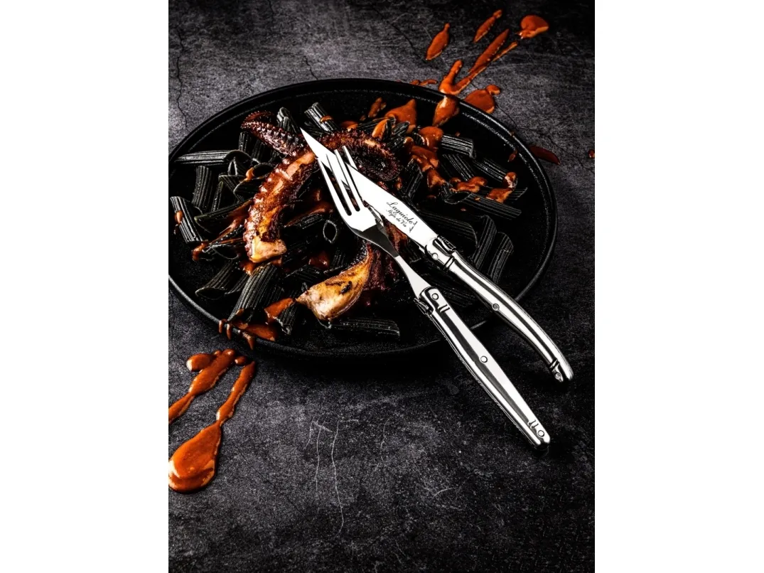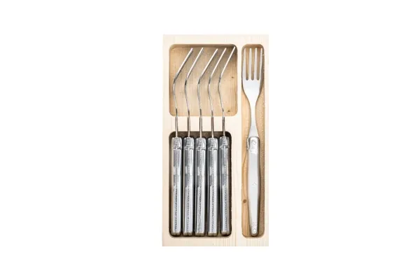 Gaffelset i rostfritt stål i set om 6 st från Premium Line of Laguiole Style de Vie. Med dessa gafflar gör du ditt set med stekknivar helt komplett. Gafflarna tål maskindisk och varje set kommer i ett praktiskt träblock.