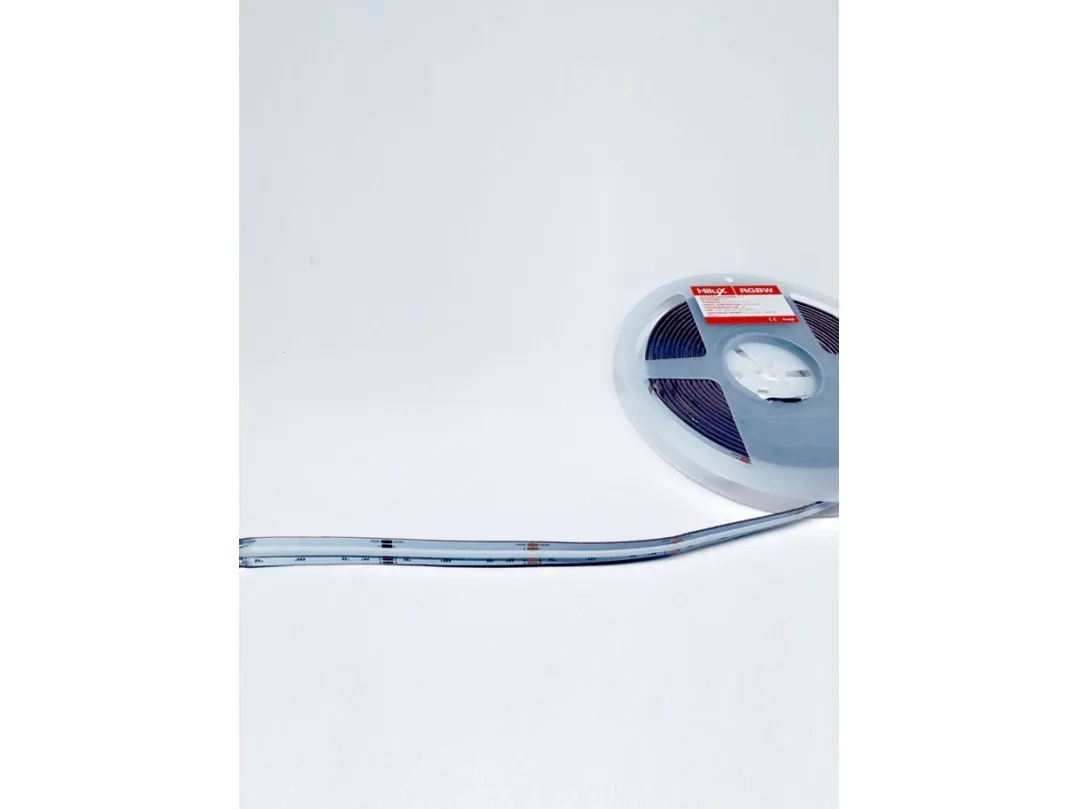 Experience the ultimate flexibility and colorfulness with the HiluX RGBW COB LED Strip, designed to bring life and color to any room. With advanced features and superior technology, this LED strip is ideal for both residential and decorative lighting.Product features: Multicolor and White Light Source: The combination of RGB and warm white lighting (choose between 2700K and 3000K) allows you to create a wide range of atmospheres and moods, as needed. High Color Rendering: With a CRI of over 90, this strip ensures that the colors in your room appear clear and natural, which is ideal for places where color fidelity is important. Technology and Design: Super High Density: With only 4.46mm between same color LEDs, this strip provides an even and consistent color distribution, which is perfect for locations that require fine detail in lighting. Flexibility and Durability: A dual-layer FPC helps balance voltage drop, heat dissipation and flexibility, making this strip both durable and easy to install. Specifications and Performance: Dimensions: The strip measures 12 mm in width and 1.6 mm in height, with a total length of 5 meters, providing extensive coverage and easy adaptation to different room sizes. Efficient Operation: With an output of 16W per meter and a brightness of up to 620 lumens per meter, this LED strip delivers powerful lighting while maintaining an energy-efficient profile. Long Life and Warranty: Designed for a lifetime of 50,000 hours with a 3-year warranty, the HiluX RGBW COB LED Strip guarantees long-term operational reliability.