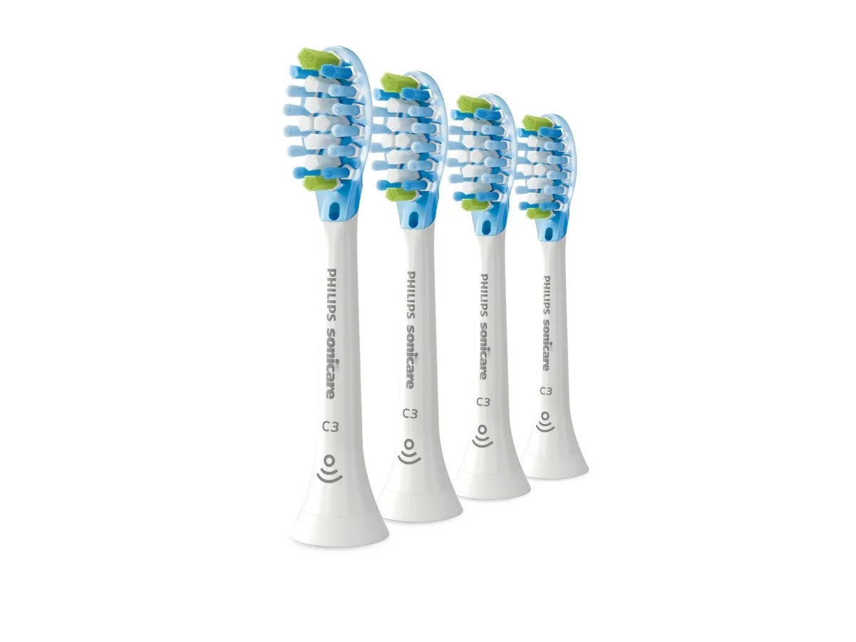 The Philips Sonicare C3 Premium Plaque Defence replacement brush head is designed to enhance your oral care experience. This replacement brush head is intended for use with toothbrushes, ensuring effective plaque removal and improving gum health. Made with 70% recycled content, this product is crafted from biobased material, promoting sustainability while maintaining quality in oral hygiene products.