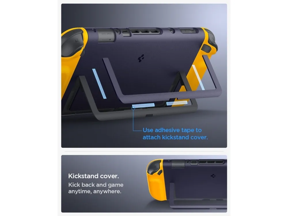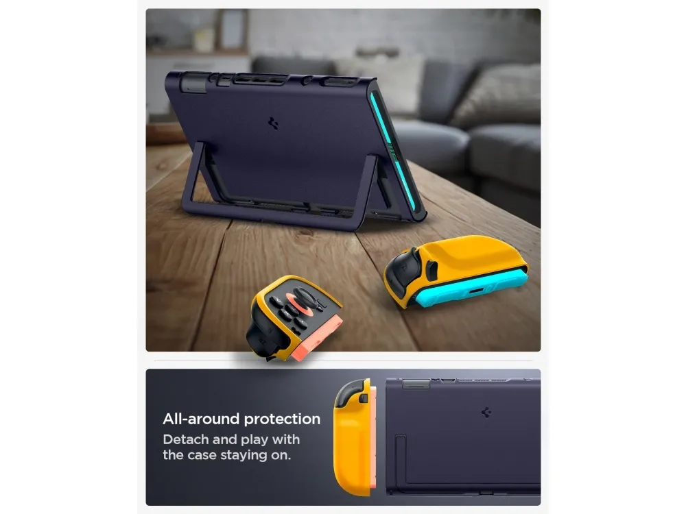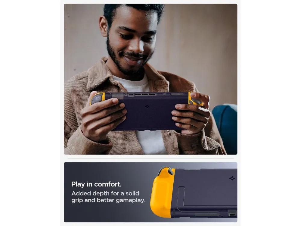 The Spigen Nano Pop carrying case provides all-around protection for your game console, crafted from a combination of silicone, polycarbonate, and thermoplastic polyurethane (TPU). This protective cover combines durability with a slim profile, ensuring that your device remains safe without adding bulk. The case features an ergonomic design that feels great to hold and includes precise cutouts for easy access to ports and buttons while maintaining dock compatibility.