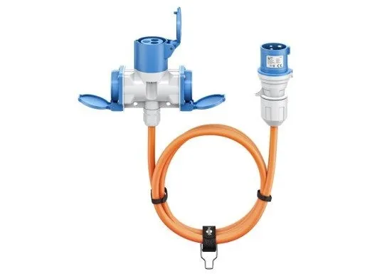 campingkabel til udendørs brug Kabellængde Det grundlæggende campingtilbehør: CEE-adapter med kombistikdåse til tilslutning af autocampere, campingvogne eller campingvogne til lysnettet på campingpladsen Den vinklede kobling gør det nemt at tilslutte to ekstra enheder med jordforbindelse på ydersiden af autocamperen Med IP44-stænkbeskyttelse, perfekt egnet til langvarig brug udendørs, i overdækkede områder, fugtige rum og på byggepladser Strømkablets orange signalfarve sikrer øget synlighed og overholder sikkerhedsstandarderne på internationale campingpladser De integrerede, selvlukkende låg på CEE-stikkontakten og de beskyttende kontaktdåser beskytter mod støv, snavs og mekaniske skader Kraftigt gummikabel H07RN-F 3G2,5 med kabeltværsnit på 2,5 mm², som kræves på campingpladser Olie-, UV- og ozonbestandig