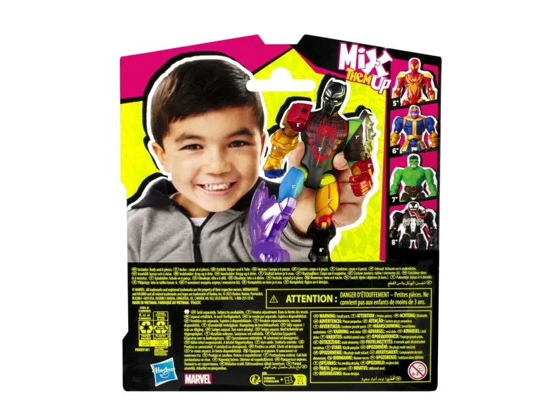 Selv de mektigste superheltene trenger innimellom en hjelpende hånd… fot, knyttneve eller tilbehør! Samleverdige MixMashers Marvel-actionfigurer har deler som kan dras fra hverandre og settes sammen for å skape unikt tilpassede figurer. Med 16 tilkoblingspunkter har hele serien av de 12 cm høye MixMashers-lekene universelle koblinger for kompatibilitet og holdbarhet. Vil du ha enda flere sammensatte krefter? Samle inkludert tilbehør og Power Up-deler for å bygge figurer med maksimale superkrefter! Se etter flere MixMashers-figurer du kan samle på eller gi som gaver ved bursdager eller høytider! (Selges separat. Tilgjengelighet varierer.) Copyright MARVEL. Alle varemerker og registrerte varemerker tilhører sine respektive eiere. HASBRO og alle relaterte varemerker og logoer er varemerker som tilhører Hasbro, Inc.
