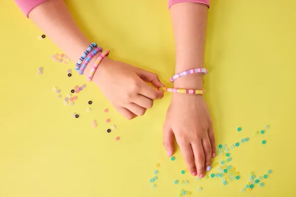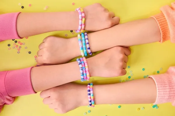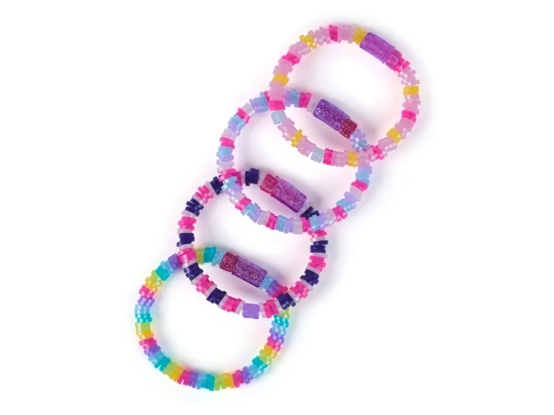 Create even more heishi bracelets in a snap with the Cool Maker Stack’d Heishi Bracelet Studio and the Expansion Pack. This bracelet kit refill kit comes with everything kids need to easily make 15 additional bracelets with the Stack’d Heishi Bracelet Studio (sold separately), including 1300 pastel heishi beads, 40 feature beads, strings and clasps. Girls can easily find their wrist size using the studio’s measuring guide, matching the symbol with the one on the studio’s beading pen to make the right size bracelet. Pick up beads with the pen and watch the design stack inside, then release the beads in the studio, right onto the string. Slide the wrist through the studio and press the button to make the bracelet magically clasp together. This Cool Maker bracelet maker will spark imagination as girls customize their own unique bracelet stacks, then wear and share bracelets with their BFFs. Whether you’re looking for engaging kids activities for sleepovers, parties, back-to-school, rainy days or for every day, the Stack’d Heishi Expansion Pack is a welcome addition to your DIY jewelry making supplies, craft supplies and craft kits. Easily make more stylish heishi bracelets with the Cool Maker Stack’d Heishi Expansion Pack.