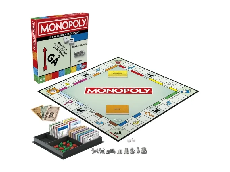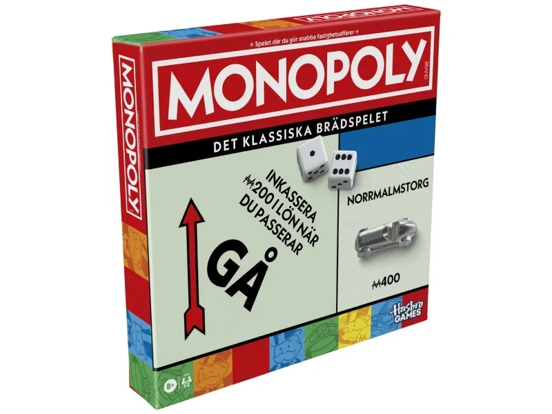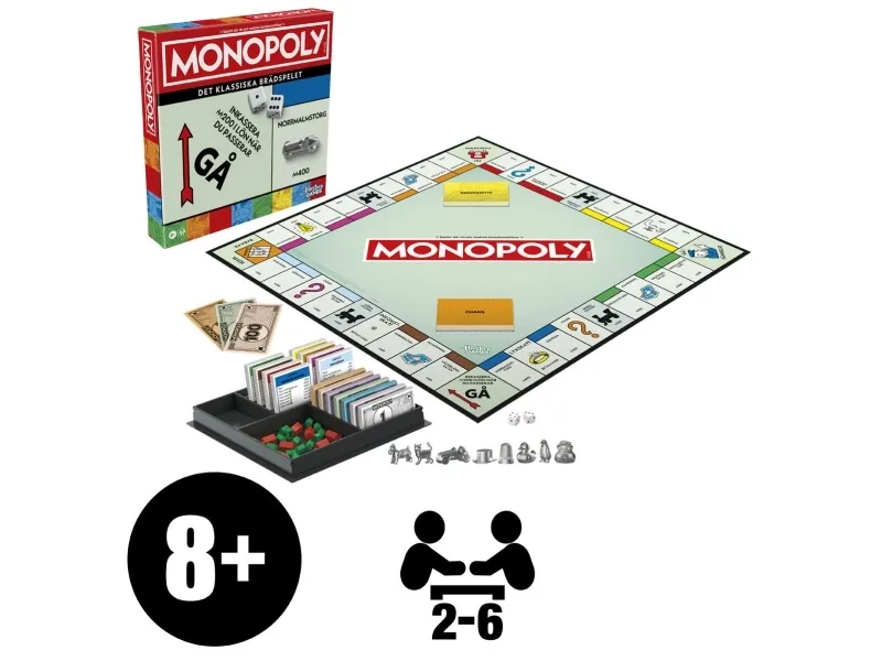 Gjør det stort eller bli blakk i Monopoly-brettspillet! I denne utgaven av det morsomme familiespillet kan du oppleve det den klassiske brettspill-fansen kjenner og elsker, samt forbedrede funksjoner. Vi har inkludert en elegant oppbevaringsskuff for å holde orden på kontanter, kort og deler. Vi har også økt størrelsen på spillebrikkene, husene og hotellene fra de i tidligere utgaver for enklere håndtering. Spillere beveger seg rundt på brettet og kjøper så mange eiendommer de kan. Jo mer de eier, desto mer husleie vil de kunne kreve inn fra andre. Den siste med penger, når alle andre spillere har gått konkurs, vinner! Er du på utkikk etter et morsomt spill for spillkvelden? Dette familiebrettspillet for barn og voksne er et spennende valg. Monopoly-spill og familespill for barn og voksne er flotte gaver til barn også. Navnet og logoen HASBRO og MONOPOLY, det karakteristiske designet av spillebrettet, de fire hjørnefeltene, navnet og karakteren MR. MONOPOLY samt de karakteristiske elementene på brettet og spillebrikkene er varemerker som tilhører Hasbro, Inc. for eiendomshandelsspillet og spilleutstyret.