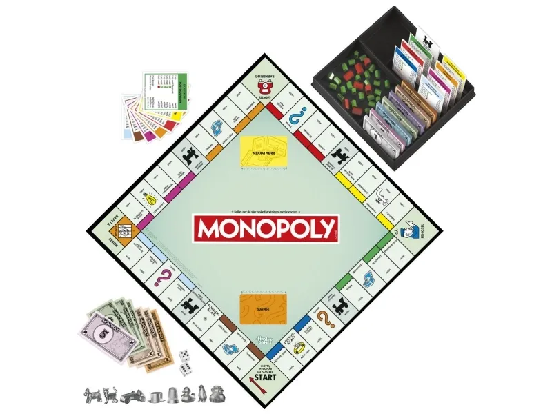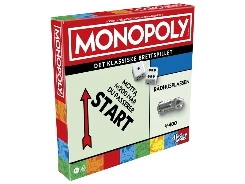 Gjør det stort eller bli blakk i Monopoly-brettspillet! I denne utgaven av det morsomme familiespillet kan du oppleve det den klassiske brettspill-fansen kjenner og elsker, samt forbedrede funksjoner. Vi har inkludert en elegant oppbevaringsskuff for å holde orden på kontanter, kort og deler. Vi har også økt størrelsen på spillebrikkene, husene og hotellene fra de i tidligere utgaver for enklere håndtering. Spillere beveger seg rundt på brettet og kjøper så mange eiendommer de kan. Jo mer de eier, desto mer husleie vil de kunne kreve inn fra andre. Den siste med penger, når alle andre spillere har gått konkurs, vinner! Er du på utkikk etter et morsomt spill for spillkvelden? Dette familiebrettspillet for barn og voksne er et spennende valg. Monopoly-spill og familespill for barn og voksne er flotte gaver til barn også. Navnet og logoen HASBRO og MONOPOLY, det karakteristiske designet av spillebrettet, de fire hjørnefeltene, navnet og karakteren MR. MONOPOLY samt de karakteristiske elementene på brettet og spillebrikkene er varemerker som tilhører Hasbro, Inc. for eiendomshandelsspillet og spilleutstyret.