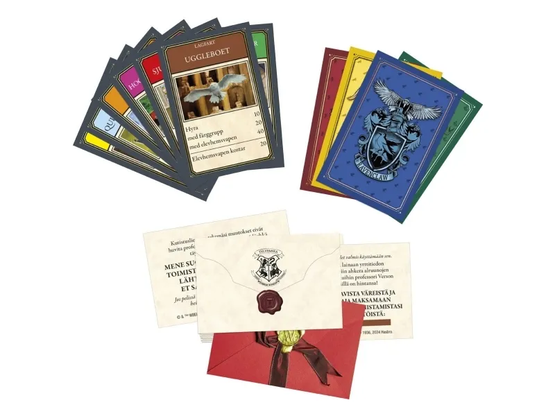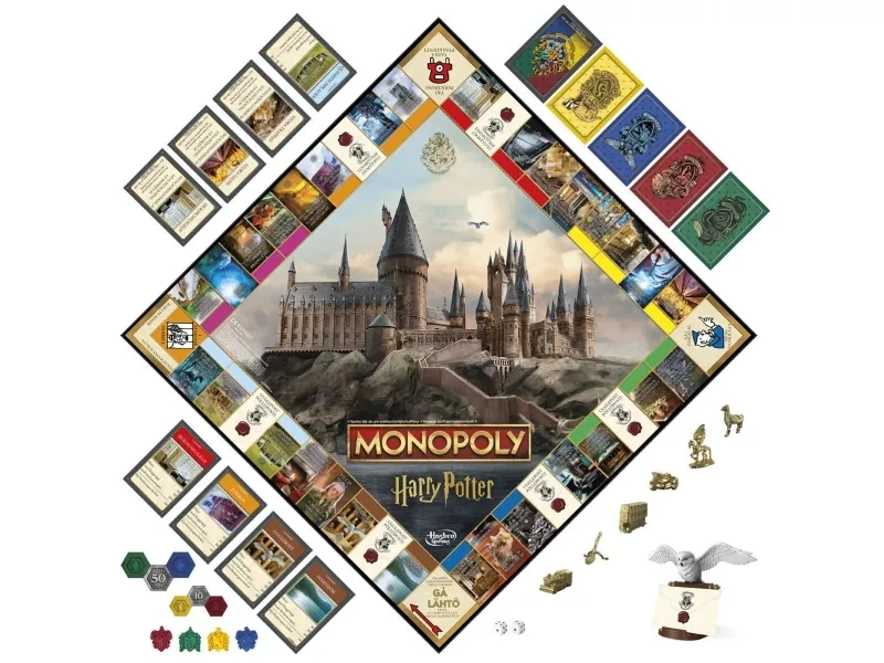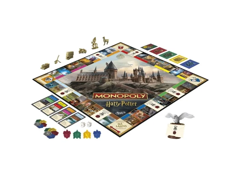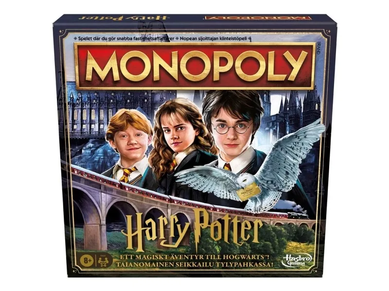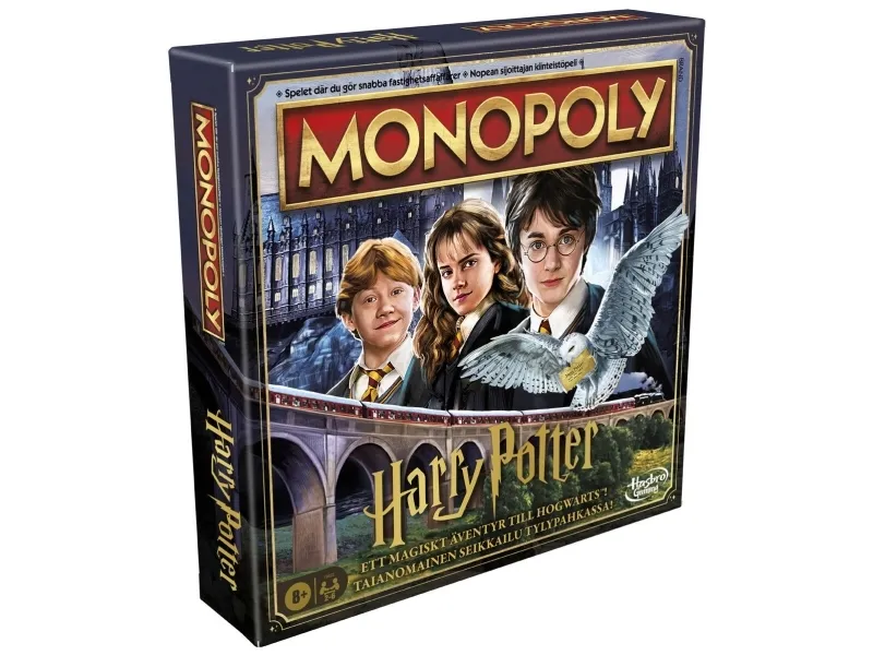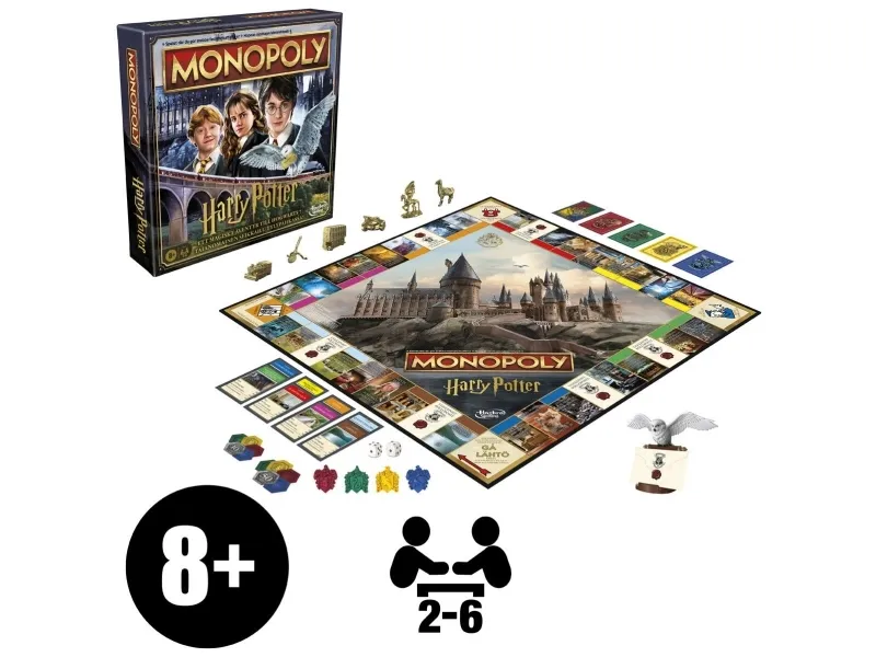 Er du klar for et magisk år på Galtvort? Spill som en Galtvort-elev i Monopoly HARRY POTTER Edition-spillet. For å starte velger hver spiller en gyllen spillebrikke. Deretter velger spillerne et huskort for å bli sortert i et hus. I denne utgaven er Galtvort-steder eiendommer, og huspoeng erstatter Monopoly-penger. Flytt rundt på brettet, og bruk huspoeng til å utforske ikoniske steder i Galtvort-slottet og Galtvang. Jo mer en spiller utforsker, desto flere huspoeng kan vedkommende samle fra andre spillere Samle et fargesett for å legge til husemblem, og trekk Uglepostkort for nyheter som kan endre spillet. Spillet er slutt når alle steder har blitt utforsket, og spilleren med flest huspoeng vinner! Dette strategibrettspillet er et morsomt spill for hele familien, og det er en flott gave til barn fra 8 år, tenåringer og voksne som er fans av HARRY POTTER. Alle figurer og elementer er varemerker som tilhører Warner Bros. Entertainment Inc. WB SHIELD: Opphavsrett og varemerke WBEI. Publiseringsrettigheter tilhører JKR. Navnet og logoen Hasbro og Monopoly, det karakteristiske designet av spillebrettet, de fire hjørnefeltene, navnet og karakteren Mr. Monopoly samt de karakteristiske elementene på brettet og spillebrikkene er varemerker som tilhører Hasbro, Inc. for eiendomshandelsspillet og spilleutstyret.