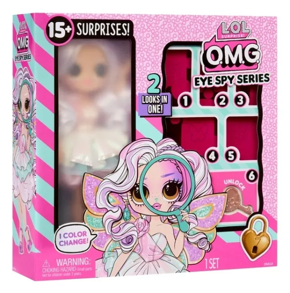 L.O.L. Surprise! gir deg den mest fantastiske og interaktive unboxing-opplevelsen noensinne! Gå inn i en verden full av overraskelser, hvor du må knekk koder, løse ledetråder og låse opp hemmeligheter én etter én for å pakke ut søte moteklær, tilbehør og mer! Hver ledetråd tar deg nærmere nøkkelen som avslører den ultimate overraskelsen – en fortryllende OMG fashion-dukke! Samle alle 4 BFF-er, hver med sitt eget unike tema: Spion, Superhelt, Rockestjerne, Fe! Fra 4 år. Inkluderer: - L.O.L. Surprise! OMG Eye Spy fashion-dukke - Flere overraskelser, inkludert fantastiske moteklær og tilbehør