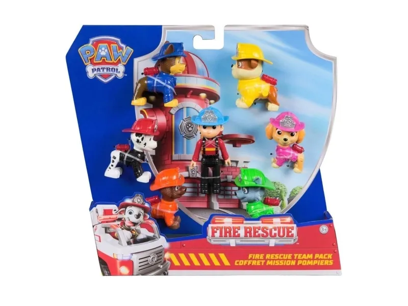 Join the PAW Patrol Fire Rescue Team and dive into heroic adventures with these collectible toy figures! This exciting set includes 7 collectible figurines featuring Chase, Marshall, Skye, Rubble, Rocky & Zuma, along with Ryder, who stands over 3 inches tall with a movable head and limbs. Each figure is decked out in their all-new fire rescue gear, ready to tackle any emergency that comes their way. Kids can recreate their favorite scenes from the show or create their own adventures, igniting their imagination and storytelling skills. These PAW Patrol learning toys are PAWsome for a birthday, Christmas, or any holiday. For even more fun, combine with the Fire Rescue Command Center, Rapid Reload Fire Truck & six different Fire Rescue figures & vehicles, so the excitement never ends. (each sold separately) Relive cherished moments from past PAW Patrol seasons, like the Mighty Pups and PAW Patrol Movie, or create new adventures with a PAW Patrol tower, individual PAW Patrol action figures and their PAW Patrol vehicles, for turbo-charged adventures.PAW Patrol Fire Rescue Team Pack with 7 Collectible Action Figures, Including Ryder & 6 Pups, Kids Toys for Boys & Girls Ages 3 and Up. Recommended age (min): 3 yr(s), Product colour: Multicolour