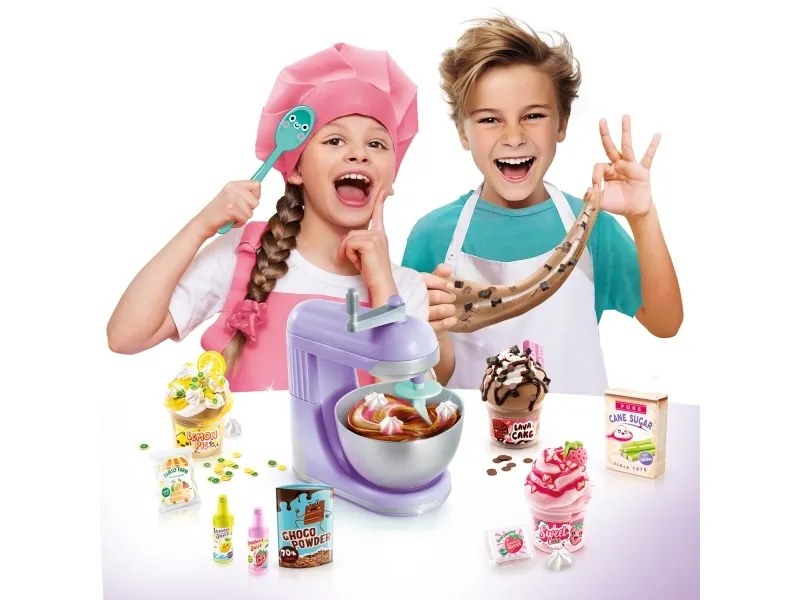 Lag deilige slimer som en proff med slim-mikseren! Bare tilsett ditt hvite slim, bland inn farge og dekorasjoner, og skap unike kreasjoner. En oppskriftsguide følger med for å hjelpe deg med å designe det perfekte slimet hver gang. Se hvordan mikseren vekker slimet ditt til live! Fra 6 år.