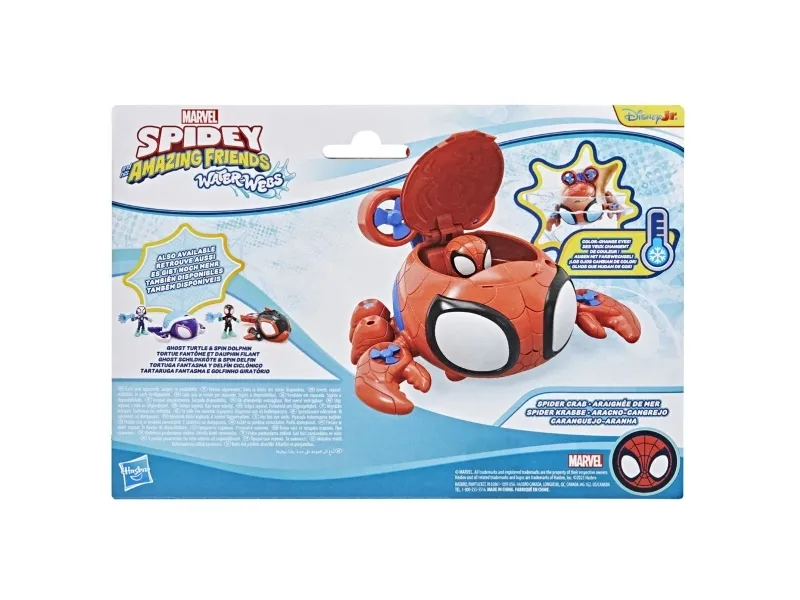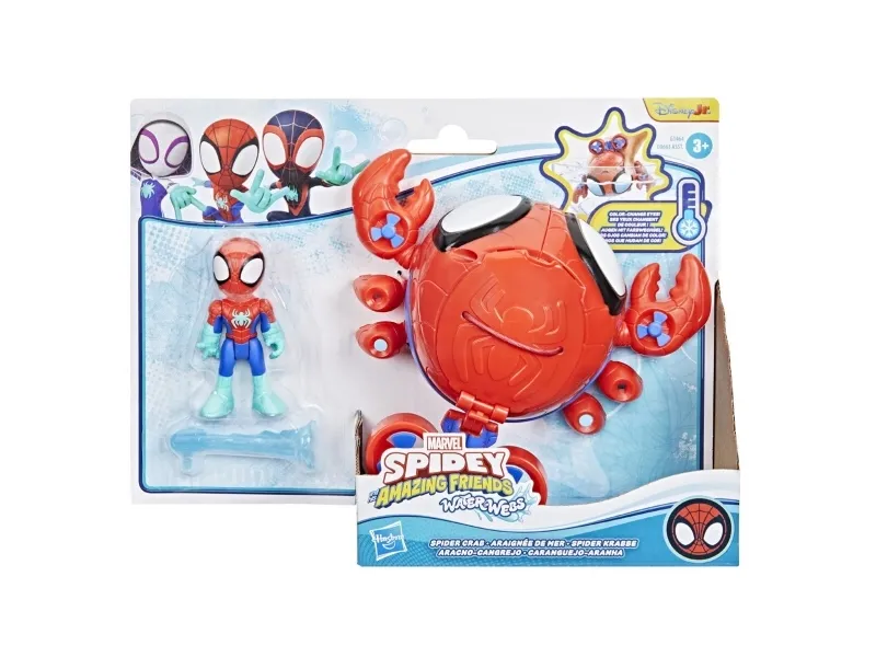 Imagine splashing into action and adventure with the Marvel Spidey and his Amazing Friends Water-Webs Spider Crab toy vehicle, as seen in select episodes of Spidey and his Amazing Friends! This girls boys 3-inch (7.6 cm) action figure vehicle set features a fun stylized vehicle toy and comes with a poseable Spidey figure. Design and deco inspired by the Disney Jr. series Spidey and his Amazing Friends, including updated Water-Webs Spider-Man suit deco. Spidey figure also comes with a detachable web accessory. Encourage big, imaginative adventure play for kids with more Spidey and his Amazing Friends toys from Hasbro, including water toys and action figure vehicles playsets! (Each sold separately. Subject to availability.)Copyright MARVEL. All trademarks and registered trademarks are the property of their respective owners. HASBRO and all related trademarks and logos are trademarks of Hasbro, Inc.