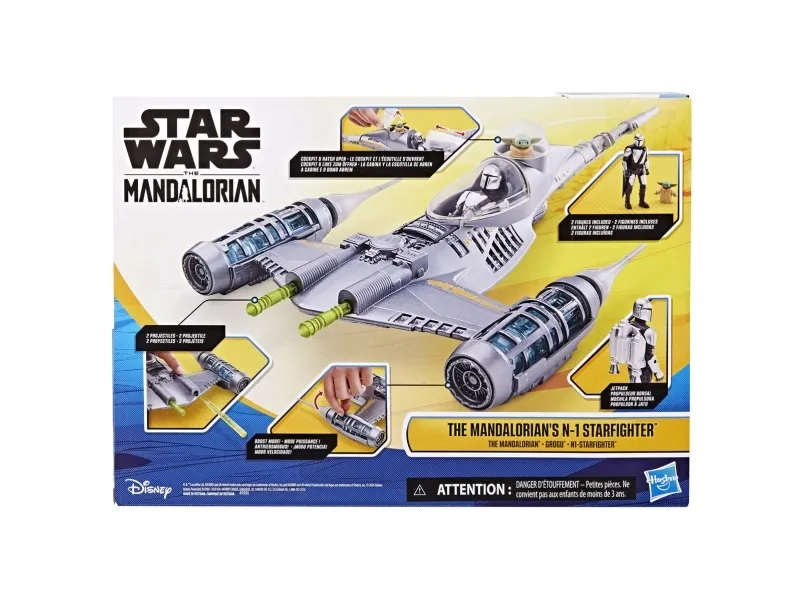 Ta leken till en ny nivå med Star Wars Epic Hero Series The Mandalorian's N-1 Starfighter-setet! Mandalorian-leksaken inkluderar N-1 Starfighter, en Mandalorian-actionfigur, en Grogu-miniactionfigur och fyra tillbehör. Sätt Mandalorian-figuren i cockpiten, placera Grogu i hans lucka och ladda de två medföljande projektilerna i skeppets portar. Nu är du redo att ta dig an galaxen! Tryck på knappen för att avfyra projektilerna och använd boostläget för att flytta motorerna på sidorna och se genomskinliga delar av skeppet. Star Wars Epic Hero Series-actionfigurer för barn är suveräna presenter till Star Wars-fans. Håll utkik efter fler figurer och fordon till samlingen från Hasbros produktserie Epic Hero Series med barnens favoritkaraktärer och design som inspirerats av film och tv. (Säljs separat, i mån av tillgång.) Star Wars-produkter tillverkas av Hasbro på licens från Lucasfilm Ltd. Hasbro och alla relaterade namn är varumärken som tillhör Hasbro.