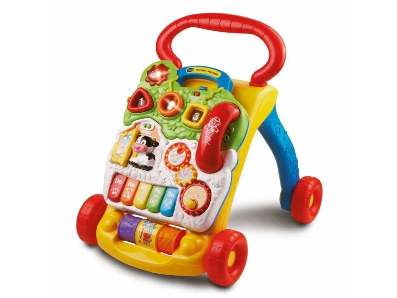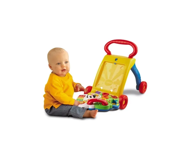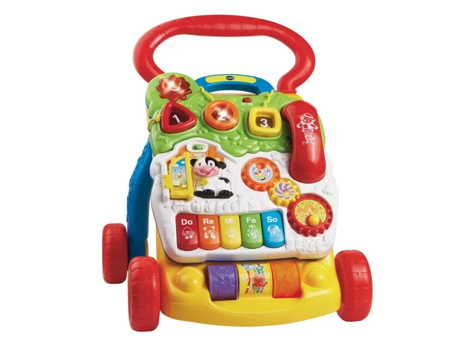Från babyns första steg till dess större steg hjälper Sit-to-Stand Learning Walker ™ av Vtech® ditt barn att utvecklas från en krypare till en rullare genom anpassningsbar teknologi. Med en ladugård full med lekfulla vänner att heja på dem kommer din lilla att ha oändligt kul när de lär sig att gå. Börja med det enklaste, att ta bort aktivitetspanelen för golvlek eller underhållande skoj, och stega sedan upp med den roliga manövreraren. Snurrväxlar, fem pianotangenter, tre färgglada rullar, tre upplysta formsorterare, tre upplysta knappar och en telefonapparat erbjuder oändliga kul som kommer att stimulera ditt barns lärande och utveckla sina motoriska färdigheter. Sit-to-Stand Learning Walker håller babyn på rätt spår och undervisar i former, färger, djur, musik och mer!
