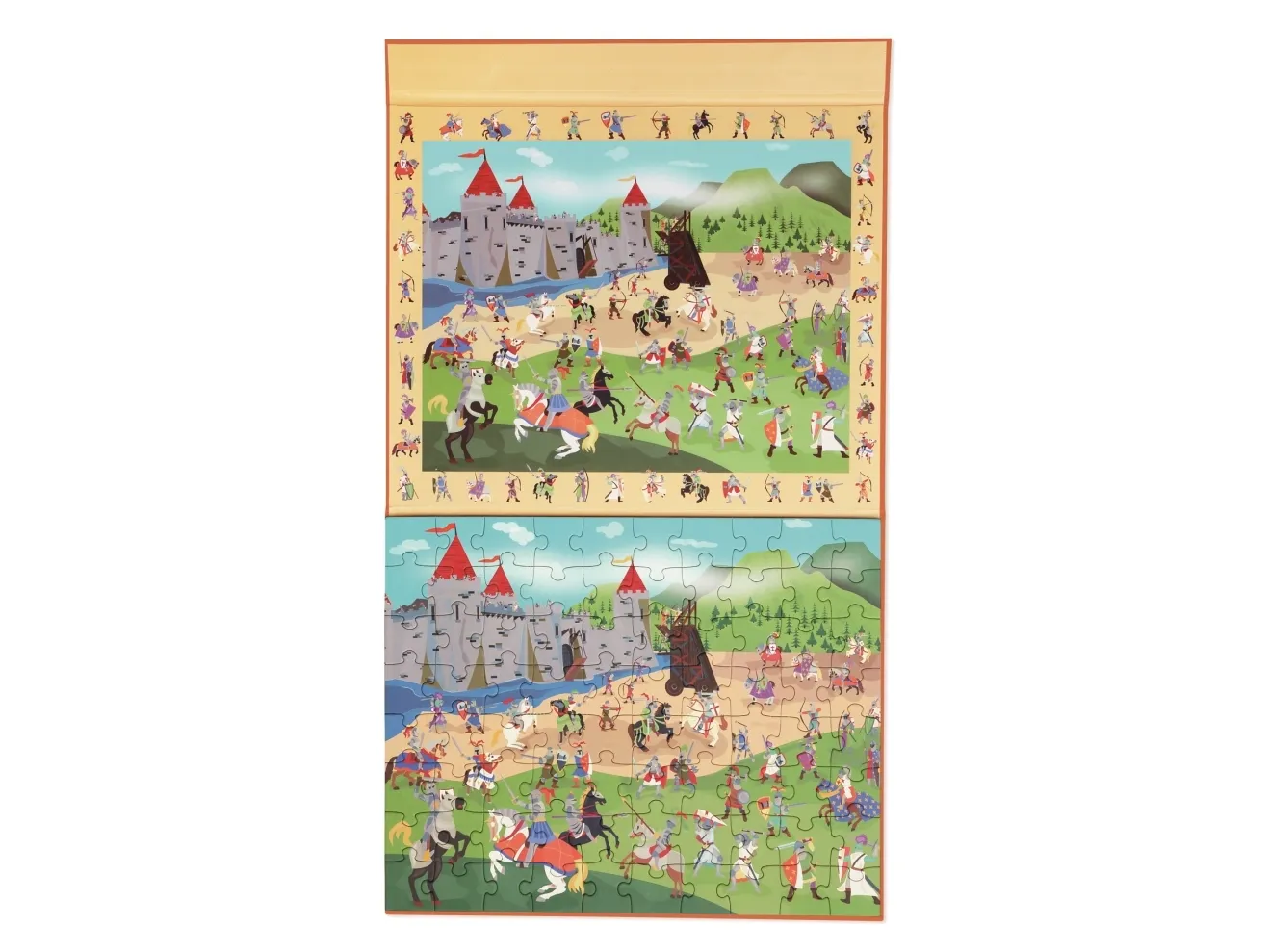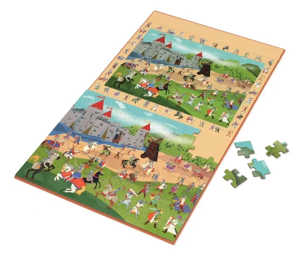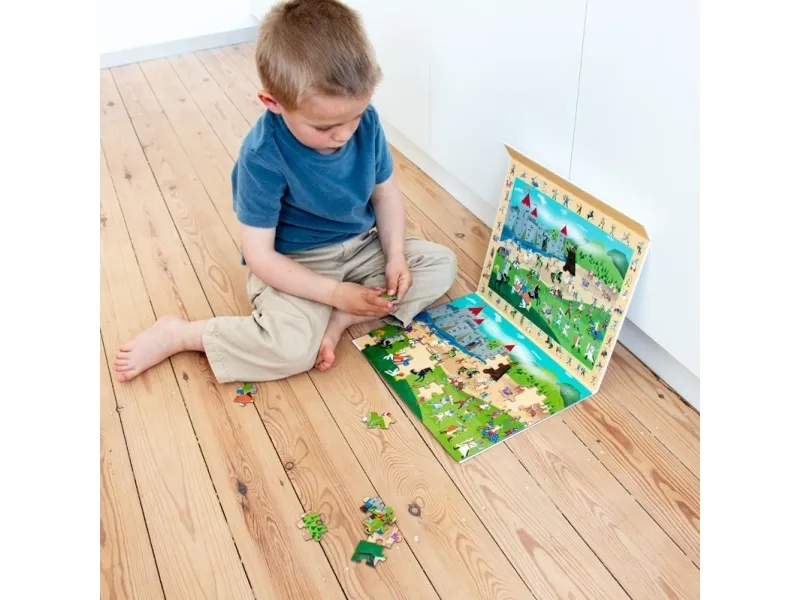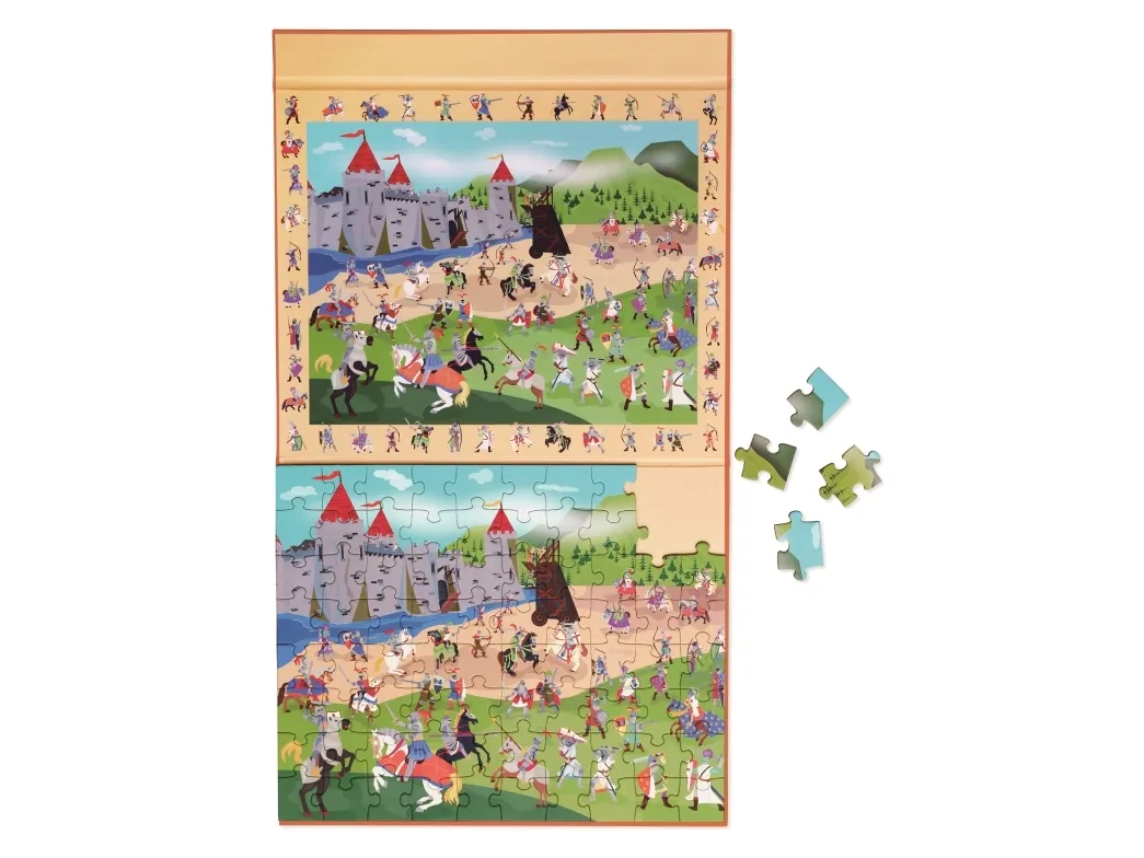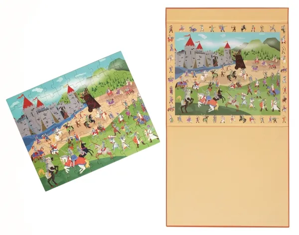 De fleste børn synes det er den rene magi at lægge puslespil. Det bliver ikke mindre sjovt af, at puslespillet er magnetisk og derfor ikke flyver rundt, men sidder fast på underlaget. Det ved Scratch godt og derfor er de dygtige til at lave magnetiske puslespil. Her er det en variant hvor barnet ikke kun kan lægge et puslespil, men også opdage mange forskellige riddere, som både er på selve puslespillet og langs kanten af puslespillet. Puslespillet er på i alt 80 brikker.