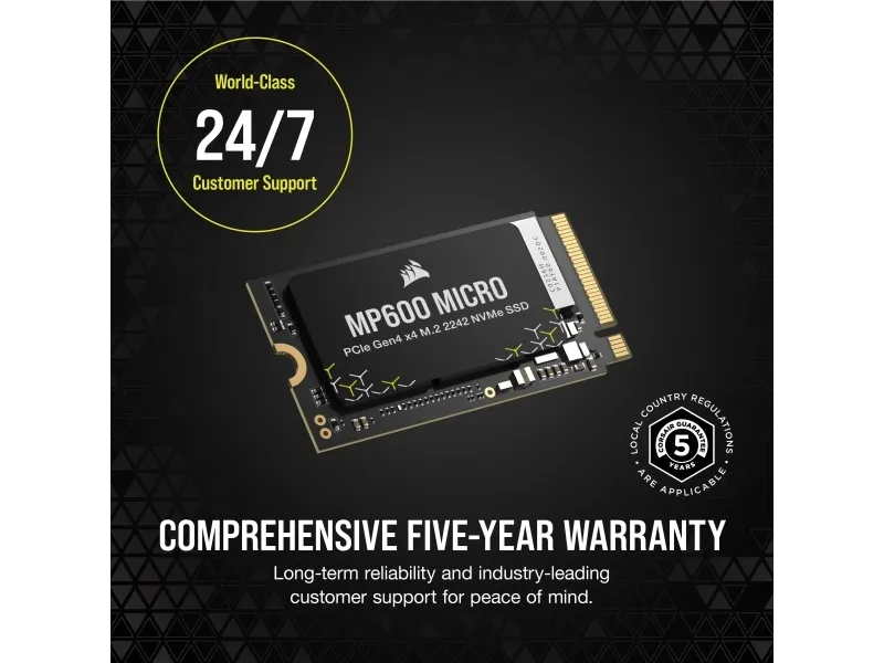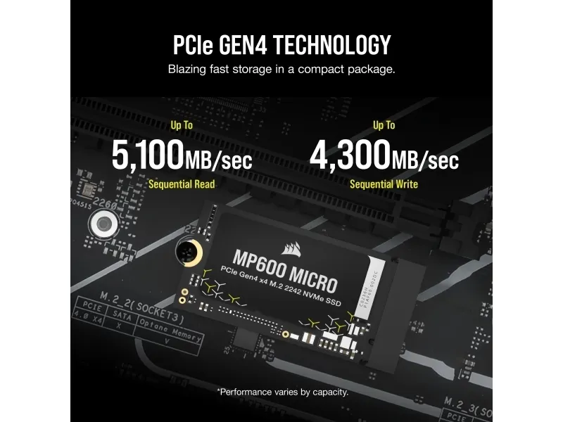 The CORSAIR MP600 Gen 4 PCIe x4 NVMe M.2 SSD provides extreme storage performance, using Gen 4 PCIe technology to achieve blazing-fast sequential read speeds.