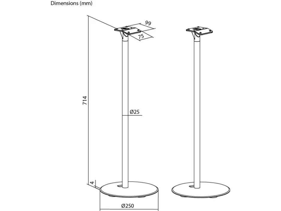 kompatibel med Sonos Era 300 Højttalerbeslag af robust metal til sikker montering af satellithøjttalere, der vejer op til 5 kg Kompatibel med højttalere som Sonos Era 300 Med en højde på 71,5 cm har højttalerstanderen den helt rigtige højde til en optimal lytte- og musikoplevelse, mens du sidder ned – i sofaen, ved skrivebordet eller på terrassen Kabelstyringssystemet er diskret skjult i basen for et rent udseende uden kabelrod Med kabelåbning til nem tilslutning og frakobling af lyd- og netkabler Højttaleren fastgøres hurtigt og nemt til stativet ved hjælp af et skruefæste