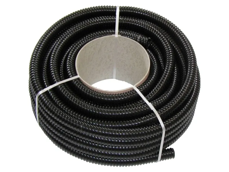 Havedamslange dia. 20 mm 45 m. Specielt egnet til brug under vand Lysuigennemtrængeligt, til 2 m vakuum Bly-cadmium, bariumfri Kan kun anvendes inden for damteknik Sort lukket, spiral-slange Yderst fleksibel, indvendigt glat, udvendigt bølget Anvendelsesområde: Damfilter, springvand, springvand og vandløb