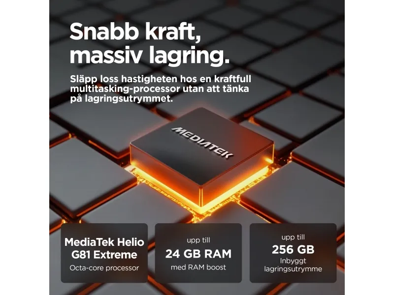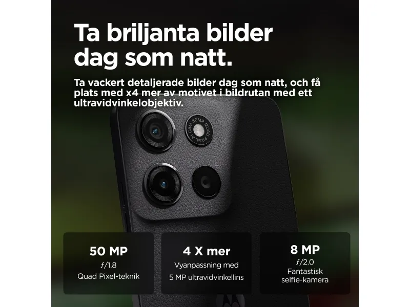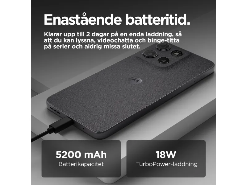 Motorola Moto G15 kombinerer imponerende funksjoner og brukervennlig teknologi i en elegant innpakning. Med en 6,72-tommers Full HD+ LCD-skjerm kan du nyte levende bilder forbedret med HDR10 og Dolby Atmos-lydteknologi for en oppslukende audiovisuell opplevelse. Det kraftige 5200 mAh-batteriet med TurboPower-teknologi sørger for forlenget bruk, slik at brukerne kan holde seg tilkoblet hele dagen. Dual-SIM-funksjonen gir allsidige tilkoblingsmuligheter, noe som gjør den ideell for både privat og profesjonell bruk. Kameraet er utstyrt med 50 megapiksler på baksiden med AI Portrait-modus og et ultravidvinkelobjektiv på 5 megapiksler, slik at brukerne kan ta fantastiske bilder under ulike forhold. Ytterligere funksjoner som ansiktsgjenkjenning og fingeravtrykksleser sørger for sikker tilgang, mens den sprutsikre designen gir enheten et ekstra lag med beskyttelse. Motorola Moto G15 gir pålitelig ytelse, enten du strømmer videoer eller multitasker med ulike apper, drevet av den 8-kjerners MediaTek Helio G81 Extreme-prosessoren.