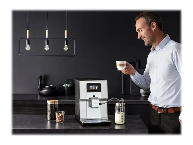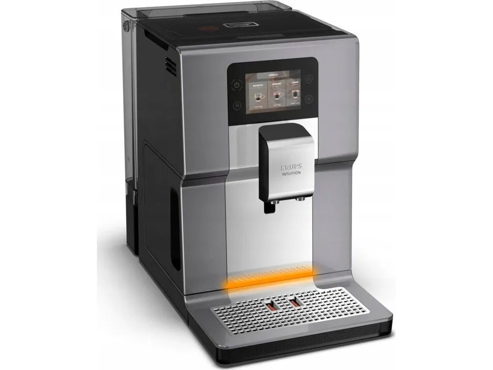 Let Intuition guide you to the perfect cup of coffee, every time. With the Krups Intuition Preference+ coffee machine, enjoy perfectly controlled extraction and Quattro Force technology in an advanced espresso machine that promises an immersive experience. The color touchscreen and intuitive colored indicator lights let you customize your machine and your saved recipes, giving you easy access to all your favorite beverages. What's more, the machine's angled design, front-mounted maintenance and overflow protection ensure exceptional ease of use. An integrated OTC system for perfect frothing and an adjustable coffee nozzle for short or long coffees complete the package. And since no handling is required, you'll spend less time worrying about cleaning and more time enjoying your favorite coffee!