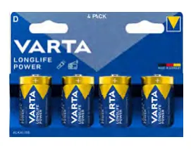 Varta Longlife Power er specielt udviklet til apparater med højt energibehov Hohem. Vær fleksibel med effektiv power. Power. De stærke batterier giver større uafhængighed. Når du har brug for maksimal effekt, er det det rigtige batteri! Varta Longlife Power er det mest kraftfulde af alle Varta-batterier. Specielt udviklet til apparater med et højt Hohem. Forbliv uafhængig med effektiv power! Power! Perfekt til brug ved energiintensive enheder som for eksempel fjernstyret legetøj, computertilbehør eller LED-lommelygter.