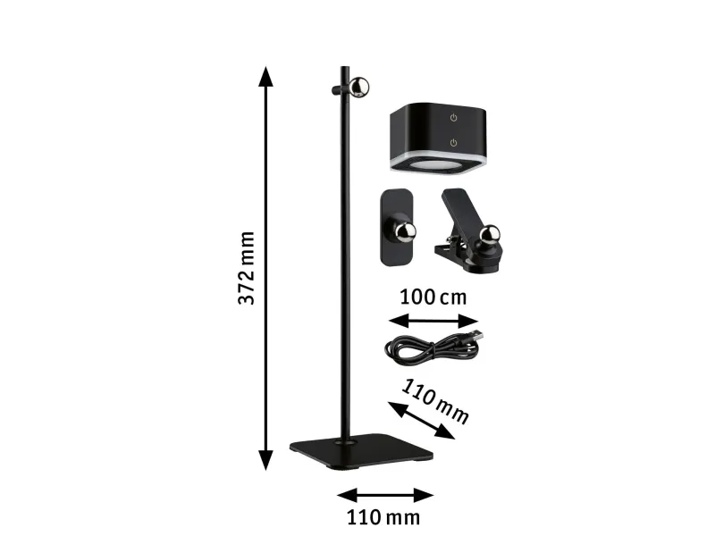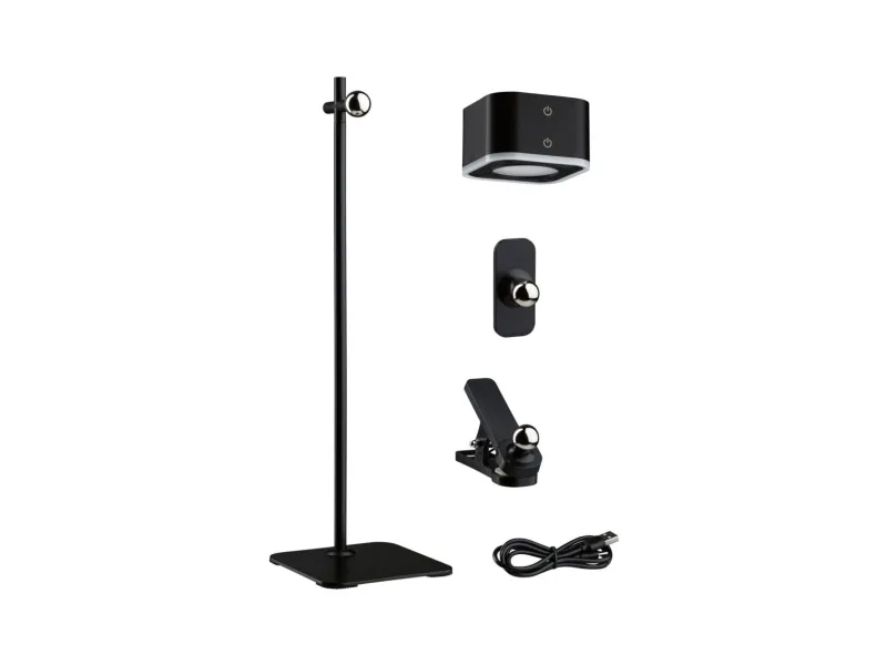 Mobile bordlampe Varia White switch 250lm / 60lm 1,6 / 1x0,4W sort Der medfølger en stabil bordfod, en selvklæbende vægholder, en fleksibel implementerbar klemmeholder og et USB-C-ladekabel Kort opladningstid og lang driftstid Med White Switch hvidlysstyring kan farvetemperaturen indstilles individuelt og dæmpes trinløst Separat styring og dæmpning af lys opad og nedad Den mobile bordlampe Varia i sort er den perfekte belysningsløsning til indendørs brug og en ægte Problemløser. Denne genopladelige USB-C batterilampe kan bruges til mange formål, uanset om det er som bord-, væg- eller bærbar håndlampe. Der medfølger en stabil bordfod, en selvklæbende vægholder og en fleksibelt implementerbar klemmeholder, der alle sørger for en nem håndtering. Takket være magnetkuglehovedleddene på holdere kan lyshovedet nemt drejes eller tages af. Ved lysarmaturet kan lysafgivelse opad og nedad kobles og styres separat. Downlight kan dæmpes, og hvidlysstyringen har forskellige farvetemperaturer (2700/4000/6500 K) efter behov. Det varmhvide lys 2700K i UPLight kan dæmpes og muliggør dermed en fantastisk baggrundsbelysning eller kan bruges som indirekte lys. Via memory husker lampen den sidste indstilling, når du genkobler. Den korte opladningstid og lange lysvarighed gør denne fleksible lampe yderst praktisk til brug og kan bruges til mange forskellige formål.