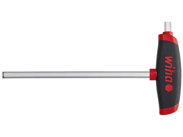 Stiftnøgle med tværgreb ComfortGrip sekskant MagicRing® med sidedrev, matforkromet 8,0 mm (45444) Anvendelse: Overførsel af høje drejningsmomenter og udtrækning af skruer fra boringer eller indføring af dem. Speciel egnethed til at løsne særligt fastsiddende skruer og til at tiltrække ekstra faste skruer. Klinge: Krom-Vanadium-stål, gennemhærdet, matforkromet Wiha tværgrebstiftnøgle ComfortGrip med sideafdrift er værktøjet, når høje drejningsmomenter skal overføres komfortabelt. Takket være den ergonomiske udformning af greb med indbyggede bløde zoner ligger tværgrebet behageligt i hånden. Mindre trykflader og mindre muskulær belastning gør arbejdet med dette værktøj til en fornøjelse. Den integrerede sideudgang holder takket være den gennemgående klinge til højeste belastninger og muliggør en problemfri åbning og lukning af skrueforbindelser, der er indhostede, fastklæbet eller fastspændt. Ved at understøtte den frie hånd på grebet opnås en ekstra stabilisering, der forhindrer en pludselig udskridning af klingen fra skruehovedet og derved skåner skruen og klingen. MagicRing® af fjederstål (fra størrelse 3 mm) holder alle sekskant-standardskruer i enhver position uafhængigt af skruematerialet.