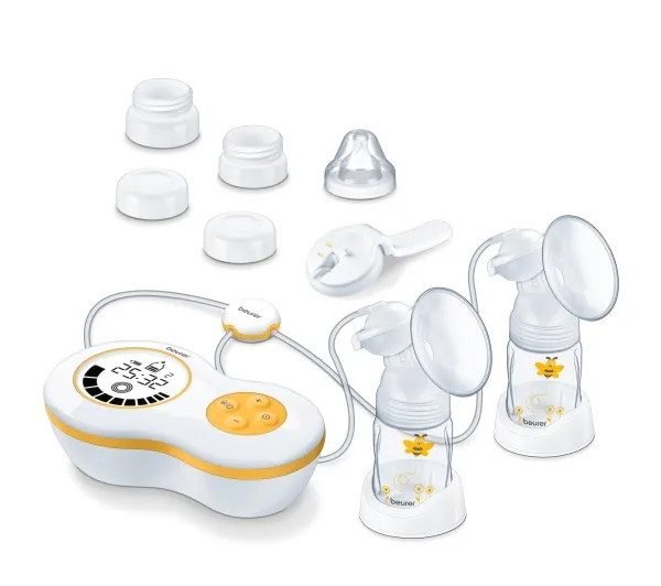 BY 70 Elektrisk brystpumpe med mulighed for dobbelt funktion. Komfortabel i brug med 10 stimulations niveauer og 10 pumpe niveauer. Hukommelsesfunktion. Leveres inkl. 2 forskellige adaptere der passer til sutteflasker og skruelåg. Har flaskeholder, samt manuel pumpe til at tage med på tur.