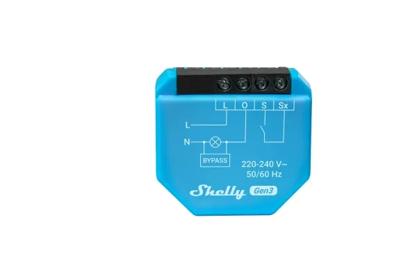 Shelly 1L Gen3 is a WiFi-controlled single-channel relay that operates without a neutral wire, making it especially suitable for lighting control where no neutral is available behind the switch. The Shelly 1L Gen3 features a built-in 1.2A relay and can control lighting loads up to 275W. It is powered by 220-240V AC. Please note that the included bypass must be installed in parallel with the load, and a minimum load of 5W is required. The device has two switch inputs, which are optional and fully programmable. Shelly 1L Gen3 is easily set up and managed through the Shelly Smart Control app or your preferred smart home system. Shelly devices operate 100% locally and only require a local network to function. Shelly can be used standalone in the Shelly Smart Control app or integrated with more than 200 partner systems such as Google Home, Apple HomeKit, Amazon Alexa, Home Assistant, Samsung SmartThings, Athom Homey, and many more. The device is also Matter certified. Local operation – no gateway required. All Shelly WiFi devices have a built-in web server, providing a wealth of features that always work, regardless of whether you have an active internet connection. No gateway is needed, so you can get started with just a single Shelly device. The built-in web server means Shelly has onboard memory and will remember sunrise, sunset, schedules, etc., even when the network is down. Relays and dimmers function as standard toggle relays and can therefore be used with your regular switches – even without internet. All inputs and outputs are fully programmable and only require local WiFi to communicate across devices. However, we still recommend having an active internet connection, as this opens up even more features. Connectivity. Shelly 1L Gen3 can connect to the internet or your local network via 2.4 GHz WiFi. Additionally, the device has built-in Bluetooth like the rest of the Pro and Plus series, allowing it to be used as a gateway for Shelly Bluetooth battery-powered devices. All Shelly devices work locally without a connection to Shelly Cloud, but it is recommended to activate this for easy data storage and increased functionality. The devices can also communicate via MQTT, HTTP, and WebSocket. All support TLS.